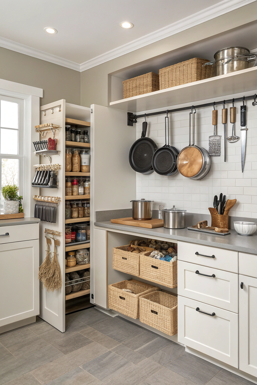 PinIn any kitchen, effective storage can make all the difference. Utilize vertical space with shelves or hanging racks, and consider pull-out drawers for easy access to pots and pans. Magnetic strips can hold knives or spice jars, freeing up counter space. Baskets under the sink or in pantry corners maximize hidden areas, keeping your kitchen organized and clutter-free.