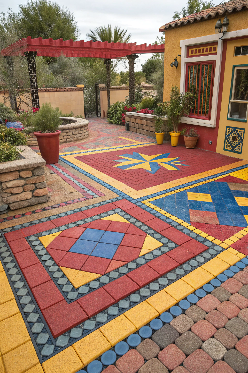 PinTransform your outdoor space with colorful paver arrangements that add vibrancy and personality to your patio. Mix and match hues like reds, blues, and yellows to create eye-catching patterns. Consider borders with contrasting colors or playful geometric layouts. Use larger pavers for impact and smaller ones for detail, ensuring your design reflects your personal style and enhances your overall outdoor experience.