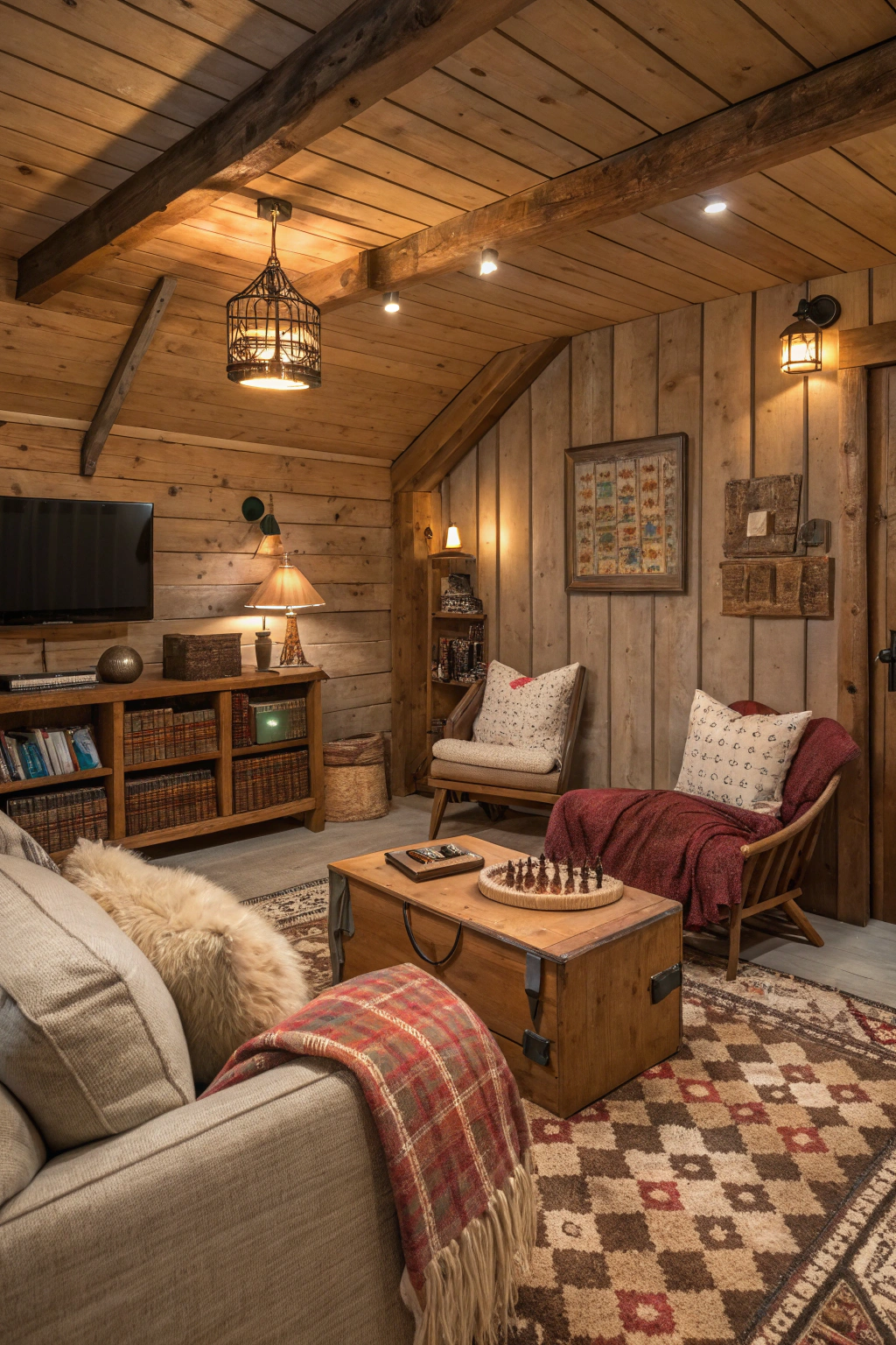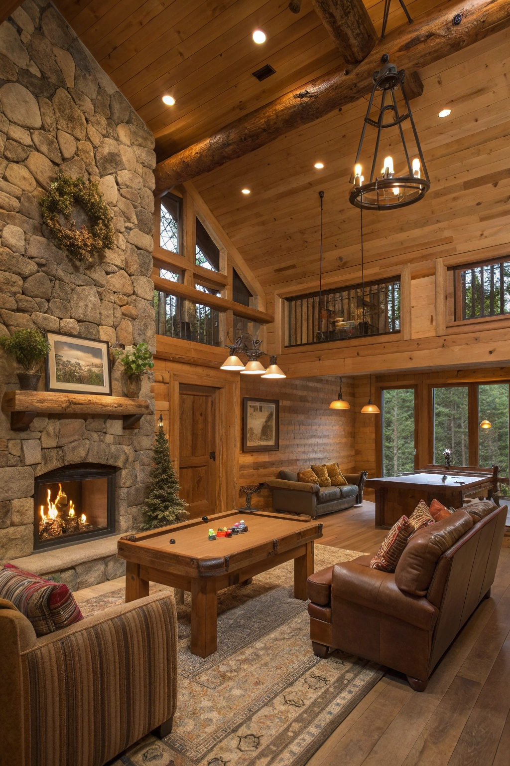 PinIf you're looking to shift from the industrial edge of a loft to a more tranquil setting, the rustic cabin charm serves as a cozy alternative. Incorporate warm woods, stone accents, and comfy furnishings to create a welcoming atmosphere. Soft lighting and nature-inspired decor will enhance the experience, making your game room a perfect retreat where you can unwind and enjoy quality time with friends.