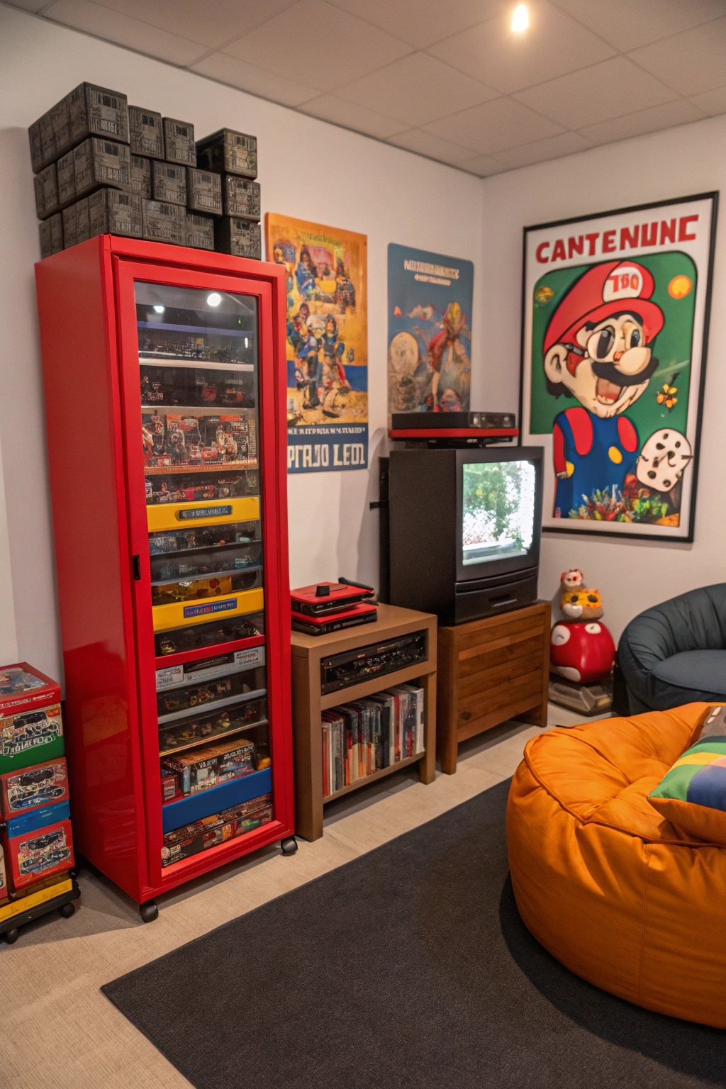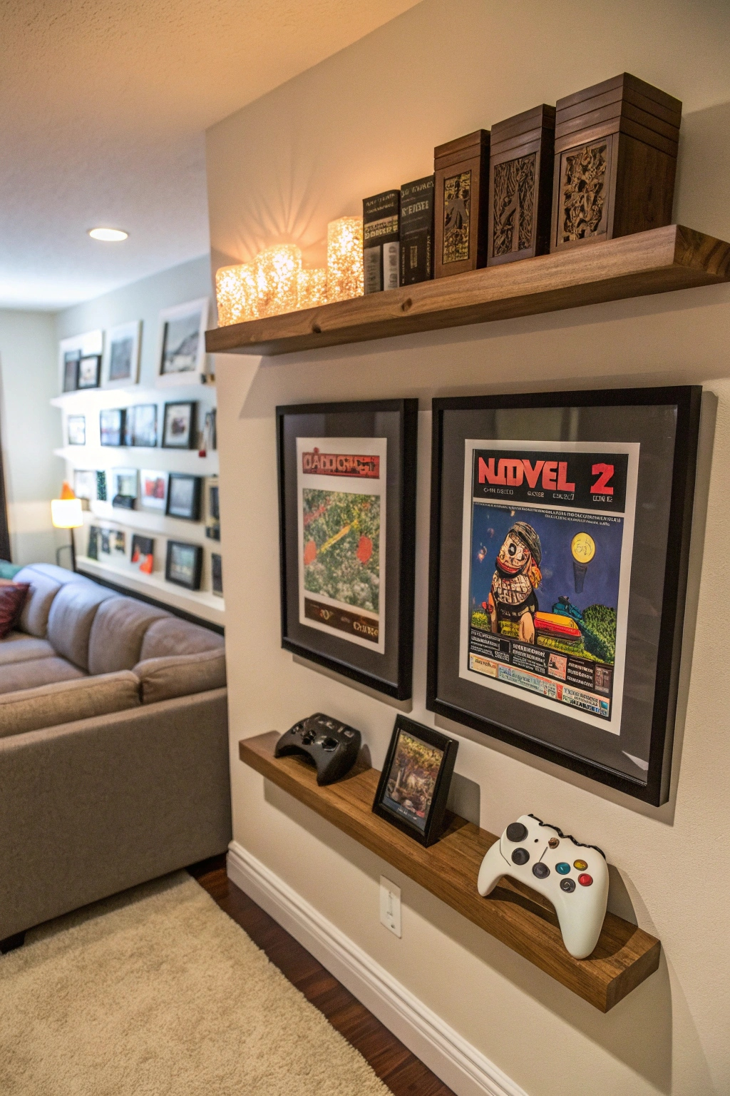 - Wall-mounted shelves: Save floor space and display your favorite games or collectibles.