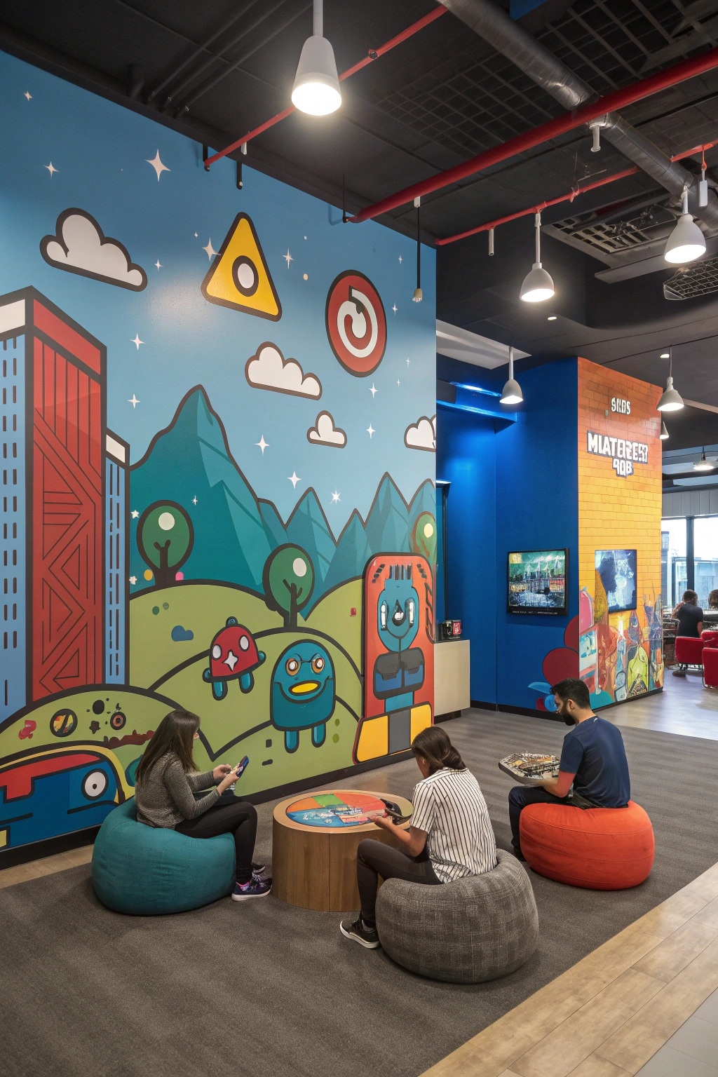 PinEnhancing your game lounge can go beyond furniture and decor; interactive wall murals can inject energy and personalization into your space. These murals invite creativity and fun, making them perfect for gatherings. Consider: