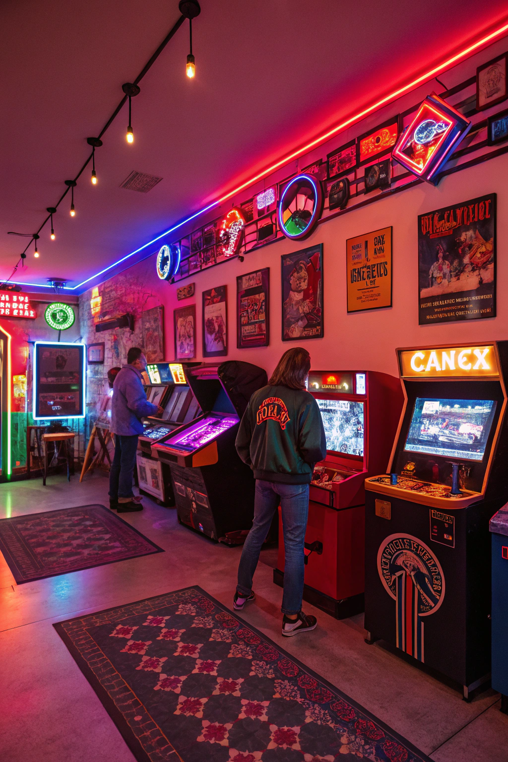 PinTransform your game room into a Vintage Arcade Wonderland, where nostalgia meets fun and excitement. Picture bright neon lights, classic pinball machines, and retro gaming consoles lining the walls. You'll feel the rush of competition as you challenge friends to old-school arcade games. Add vintage posters and memorabilia to enhance the theme. This space will be a tribute to gaming's golden age.