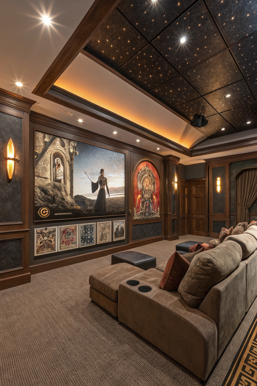 PinWhile creating a themed movie room, you can transform your space into a cinematic escape that immerses you and your guests in your favorite films. Choose a specific genre or movie series as inspiration, then incorporate wall art, themed decor, and ambient lighting. A comfy seating arrangement with plush cushions will guarantee everyone enjoys those movie marathons in style and comfort.