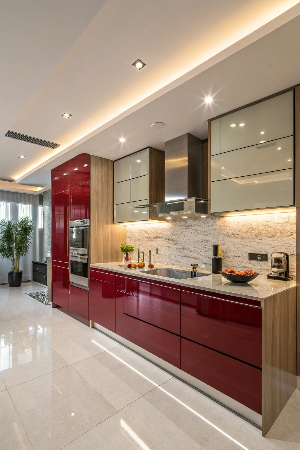 PinA contemporary high gloss kitchen design offers a sleek and modern aesthetic that instantly elevates your cooking space. You'll love how the reflective surfaces create an illusion of expanded space while showcasing your style. Pair bold colors with minimalist hardware for a chic look, and use under-cabinet lighting to enhance those glossy finishes. It's a perfect backdrop for culinary creativity and entertaining guests.