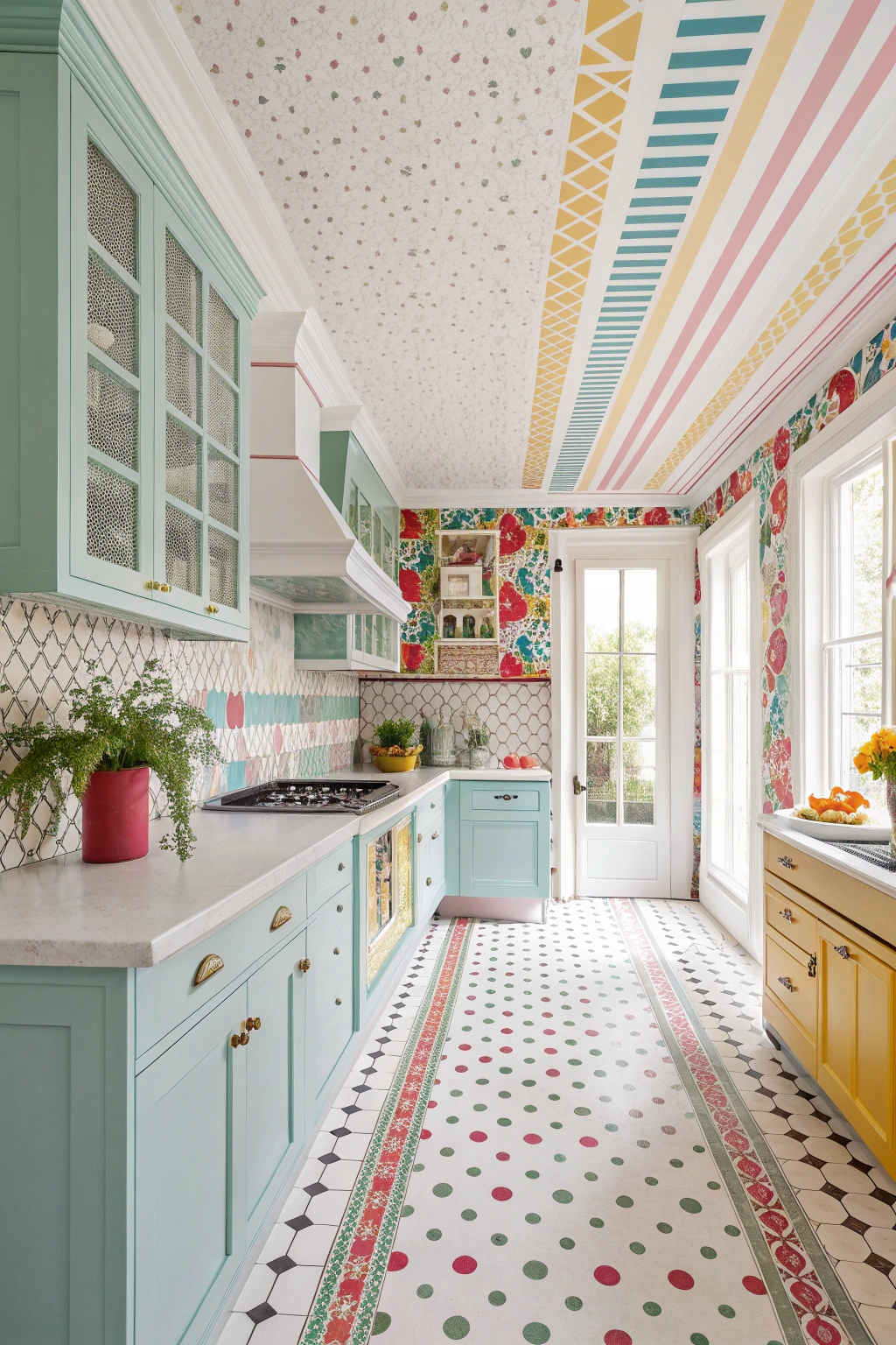 PinIncorporating playful patterns into your kitchen design can add personality and charm, much like the dramatic ceiling features that catch the eye. Think patterned tiles, vibrant wallpapers, or colorful backsplashes to create an inviting atmosphere. Mix stripes, polka dots, or floral designs for a fun twist. You'll find that these patterns not only enhance aesthetics but also spark joy in your everyday cooking space.