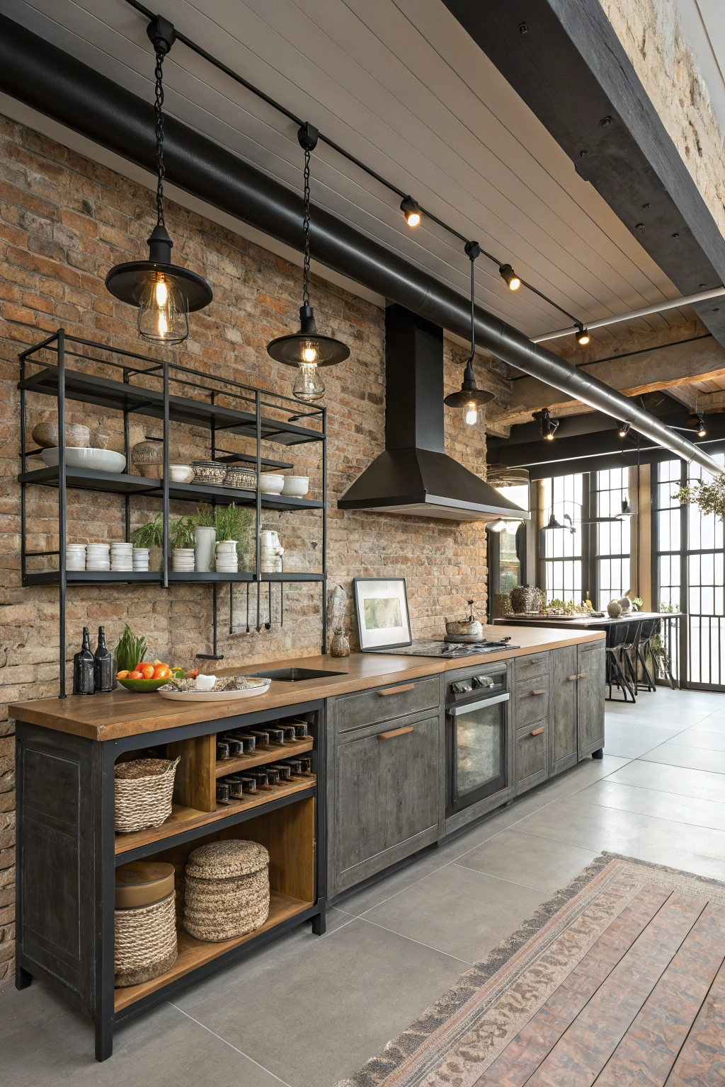 PinIndustrial chic designs blend raw materials with modern aesthetics, creating a striking kitchen that exudes character and style. You'll love the combination of exposed brick, steel beams, and rustic wood accents. Open shelving allows you to display your favorite cookware, while oversized light fixtures add drama. This design captures an edgy vibe, making your kitchen a perfect blend of functionality and artistry.