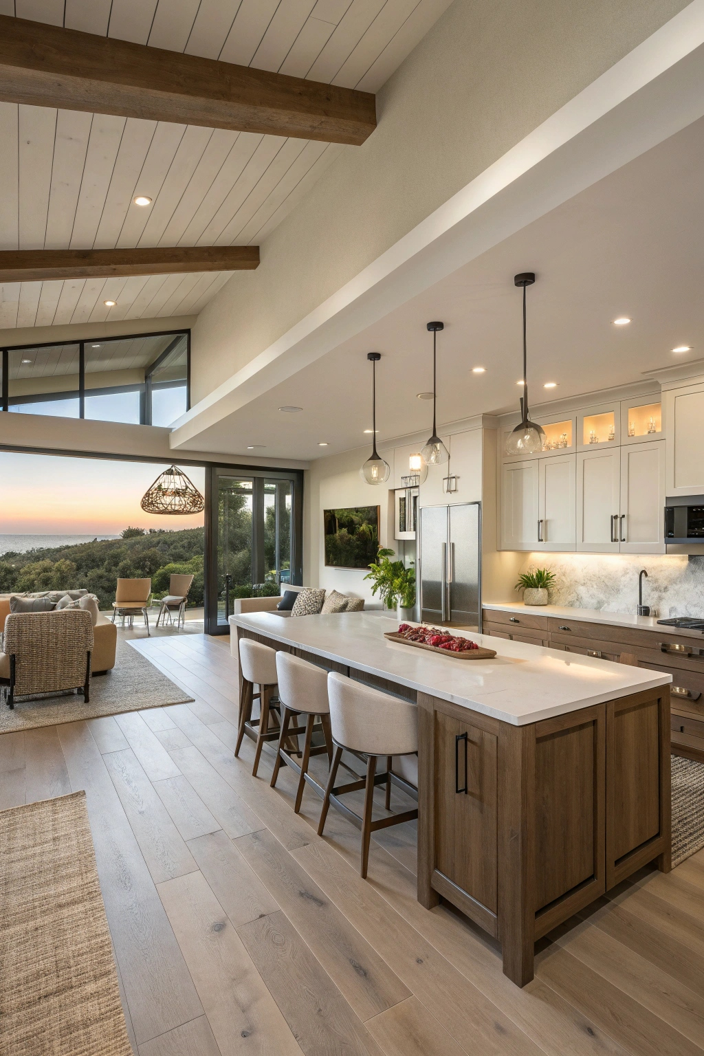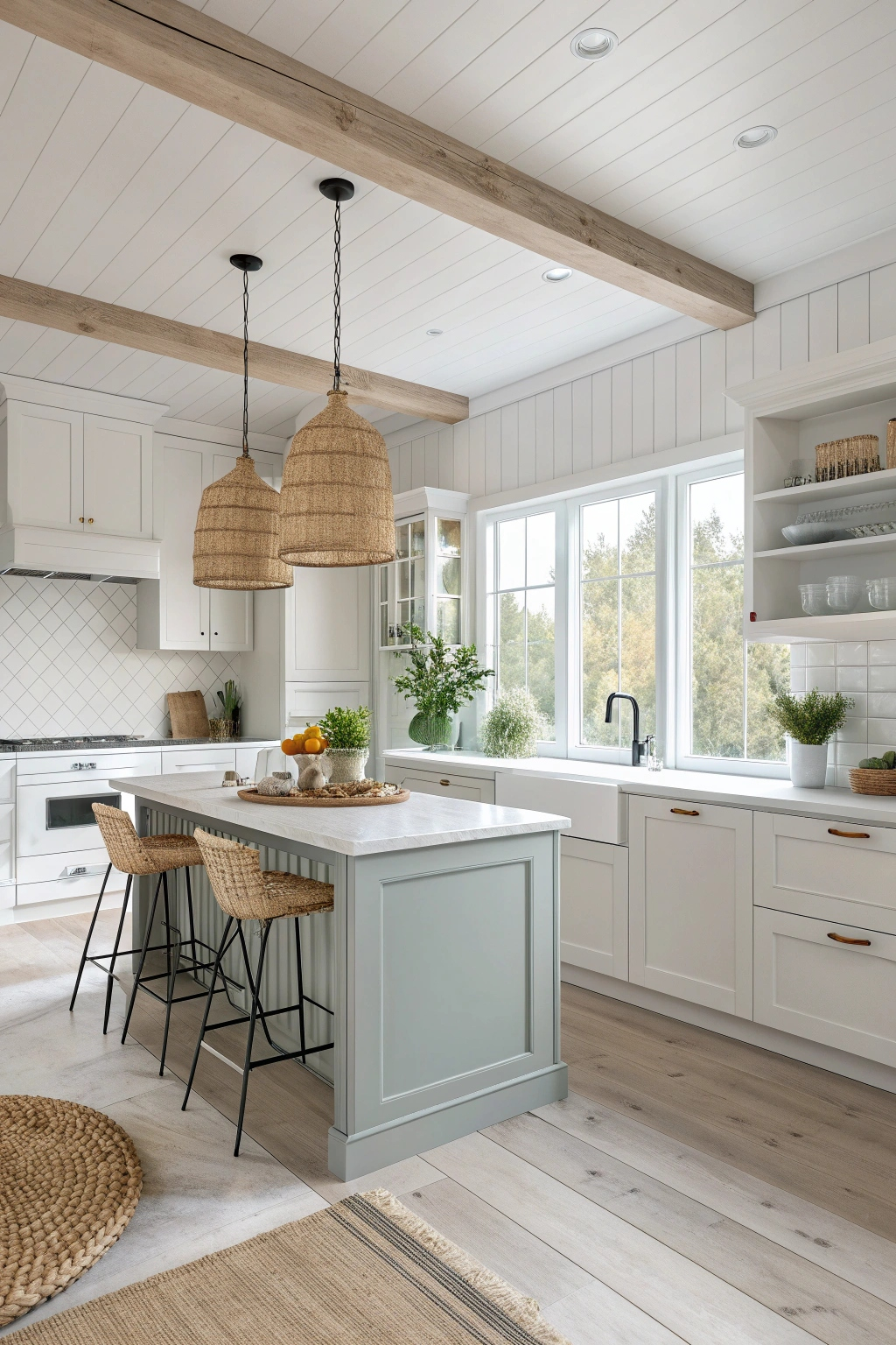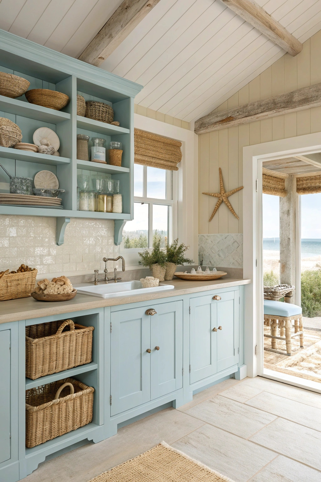 PinMoving from the bold lines of industrial chic, coastal inspirations bring a light and breezy feel to your kitchen. Think soft blues and sandy beiges, creating a serene palette. Incorporate natural textures, like driftwood and rattan, to enhance the coastal vibe. Open shelving can display charming seashells and beachy decor, making every meal feel like a vacation by the shore.