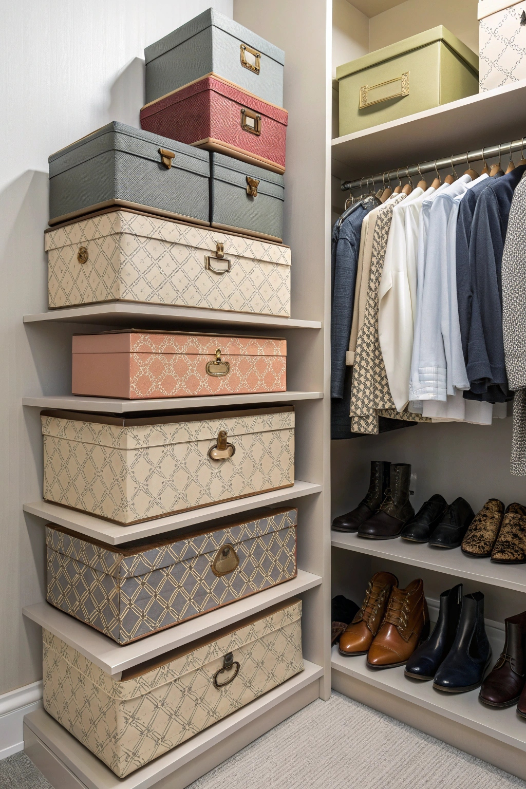 PinDecorative boxes can add both functionality and flair to your walk-in closet. Use them to neatly store accessories, shoes, or seasonal clothing. Choose stylish designs that complement your decor, creating an organized and visually appealing space. Stack boxes for vertical storage or place them on shelves for easy access. With the right decorative boxes, you'll enhance both style and efficiency in your closet.