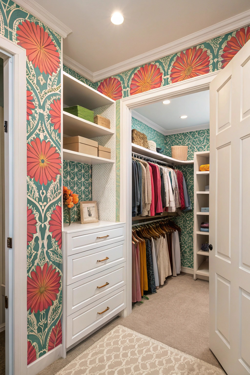 PinHow can you transform your walk-in closet into a stunning retreat? Adding statement wallpaper is a game-changer! Here are four ideas to inspire you: