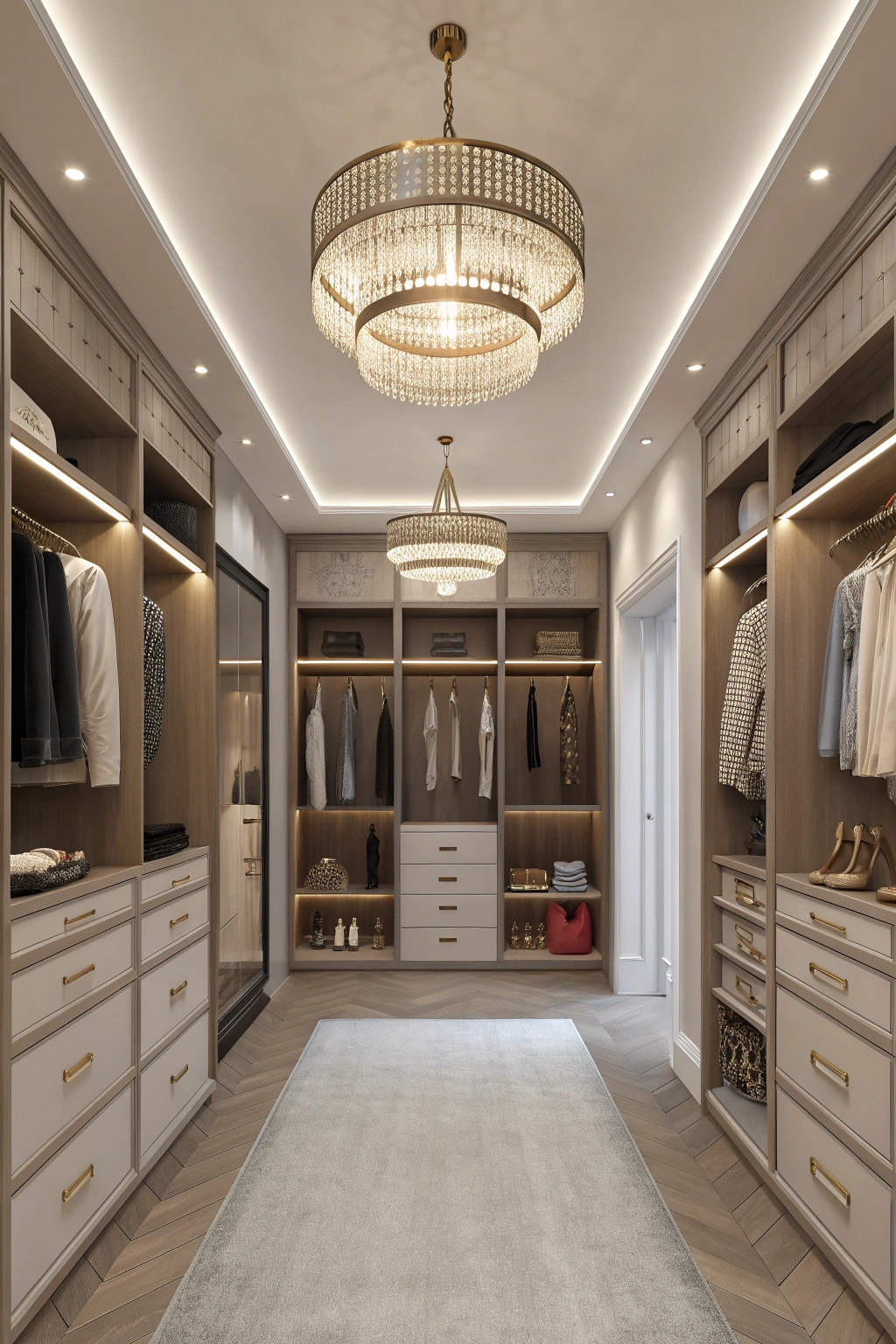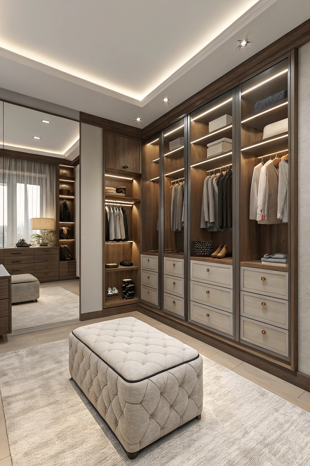 PinTo create a visually stunning walk-in closet, layering textures can make a significant impact. Consider integrating these elements: