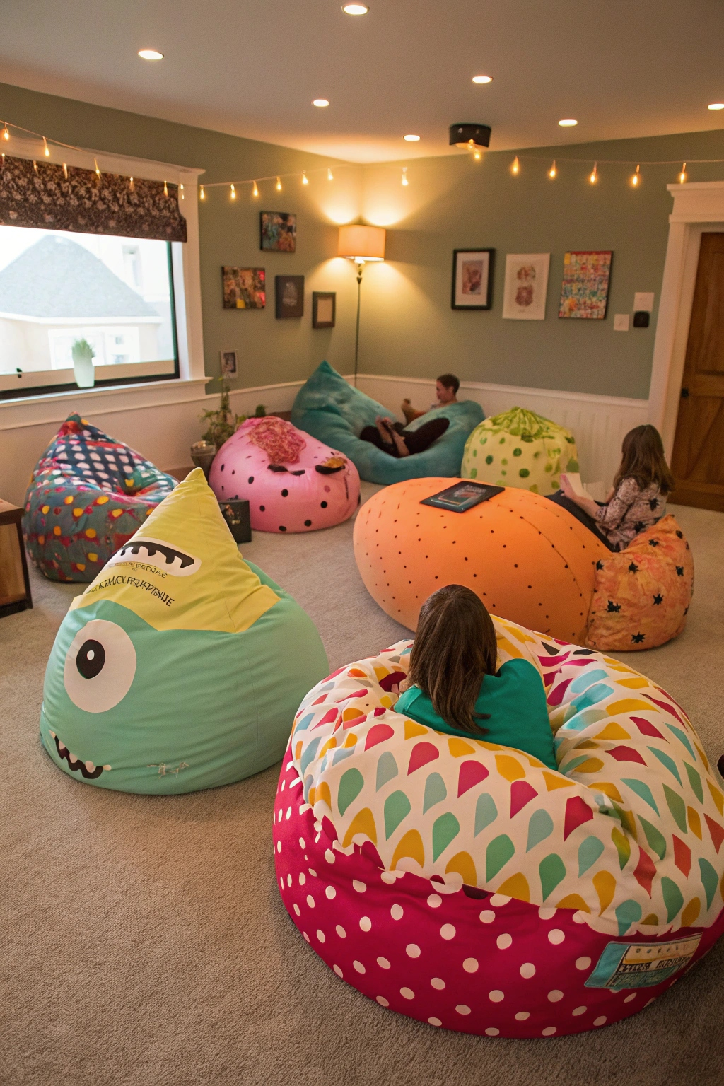 PinAdd a playful touch to your living room with whimsical bean bag chairs that can really brighten up the space. These comfy and colorful seating options invite relaxation and fun, making them perfect for casual gatherings or cozy movie nights. Choose quirky patterns or unique shapes to express your personality, and watch how they instantly become a favorite hangout spot for everyone.