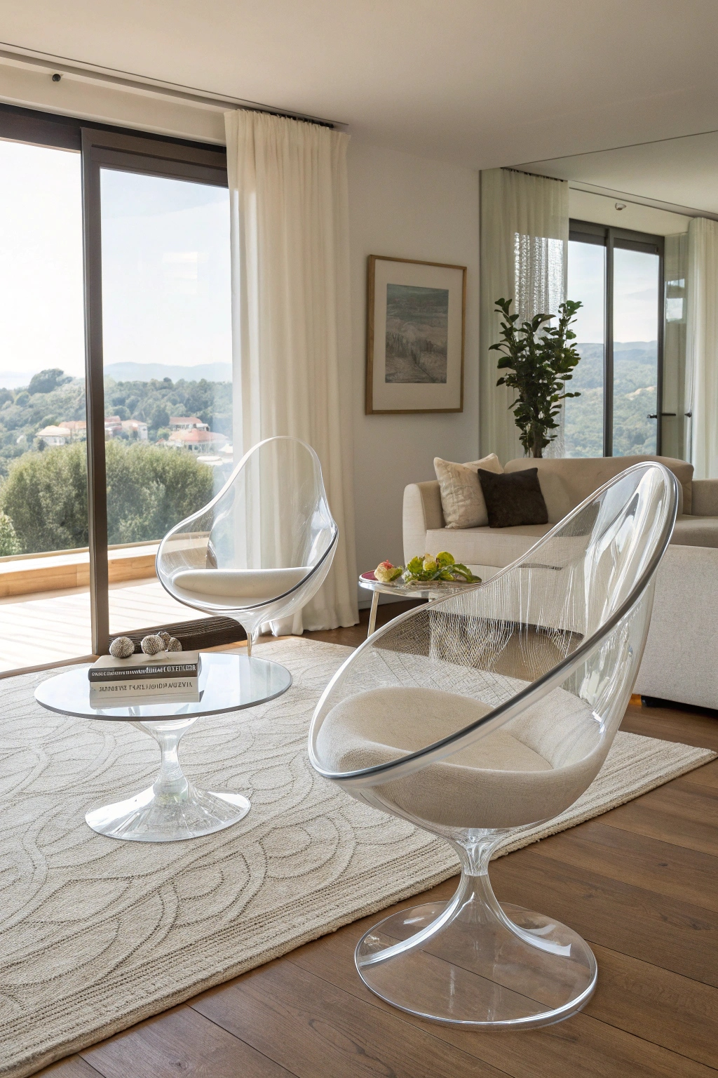 PinAfter enjoying the comfort of oversized lounge chairs, you might be curious about how to infuse a modern touch into your living room. Futuristic transparent chairs, made from materials like acrylic or polycarbonate, create a light and airy feel. Their sleek design adds elegance without overwhelming your space, allowing you to showcase your decor while offering a chic seating option for guests.