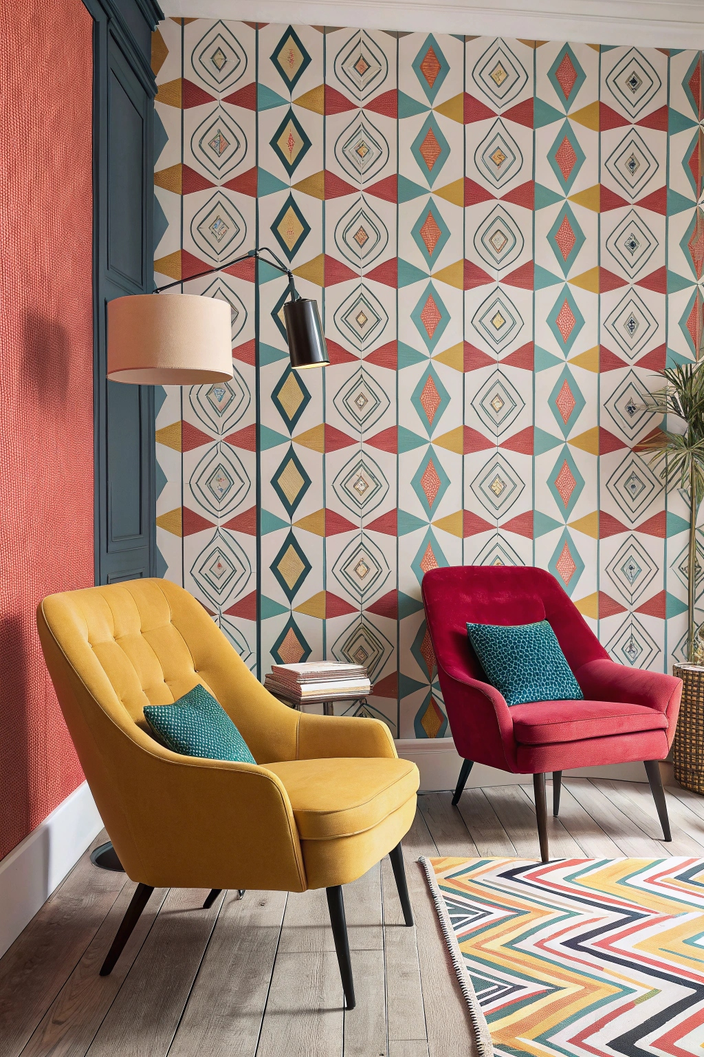PinBold geometric patterns can transform your living room into a stylish focal point. Choose accent chairs featuring striking shapes and vibrant colors to create an eye-catching display. Pair these chairs with solid-colored furnishings to balance the look. Don't shy away from mixing different patterns; just maintain a cohesive color palette. This approach adds depth and personality, ensuring your space feels both inviting and dynamic.