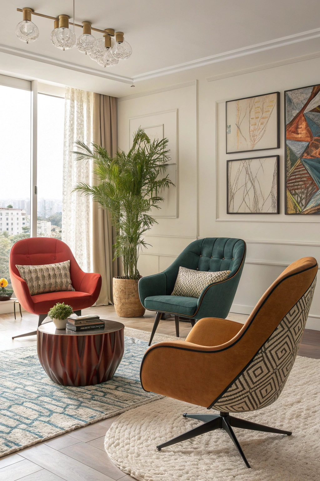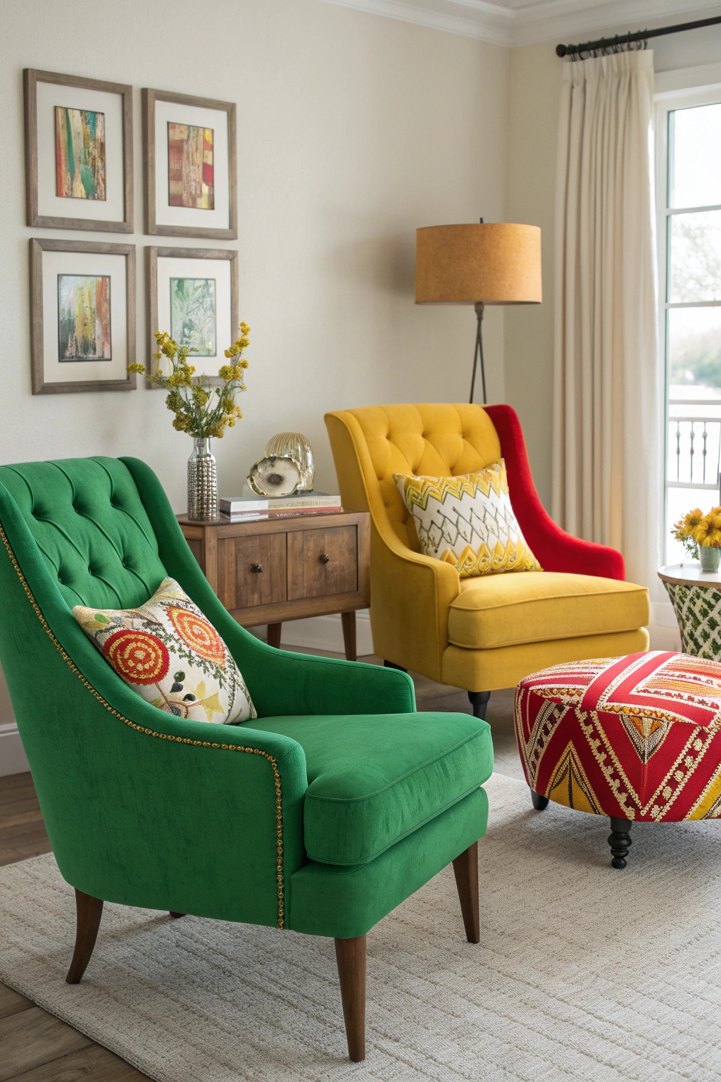 PinBright color pops can instantly transform your living room into a vibrant and inviting space. Choosing accent chairs in bold shades like emerald green, sunny yellow, or fiery red can create a lively focal point. Pair these chairs with neutral walls or furniture to enhance their appeal. Don't be afraid to mix patterns and textures, as this can elevate your design even further.