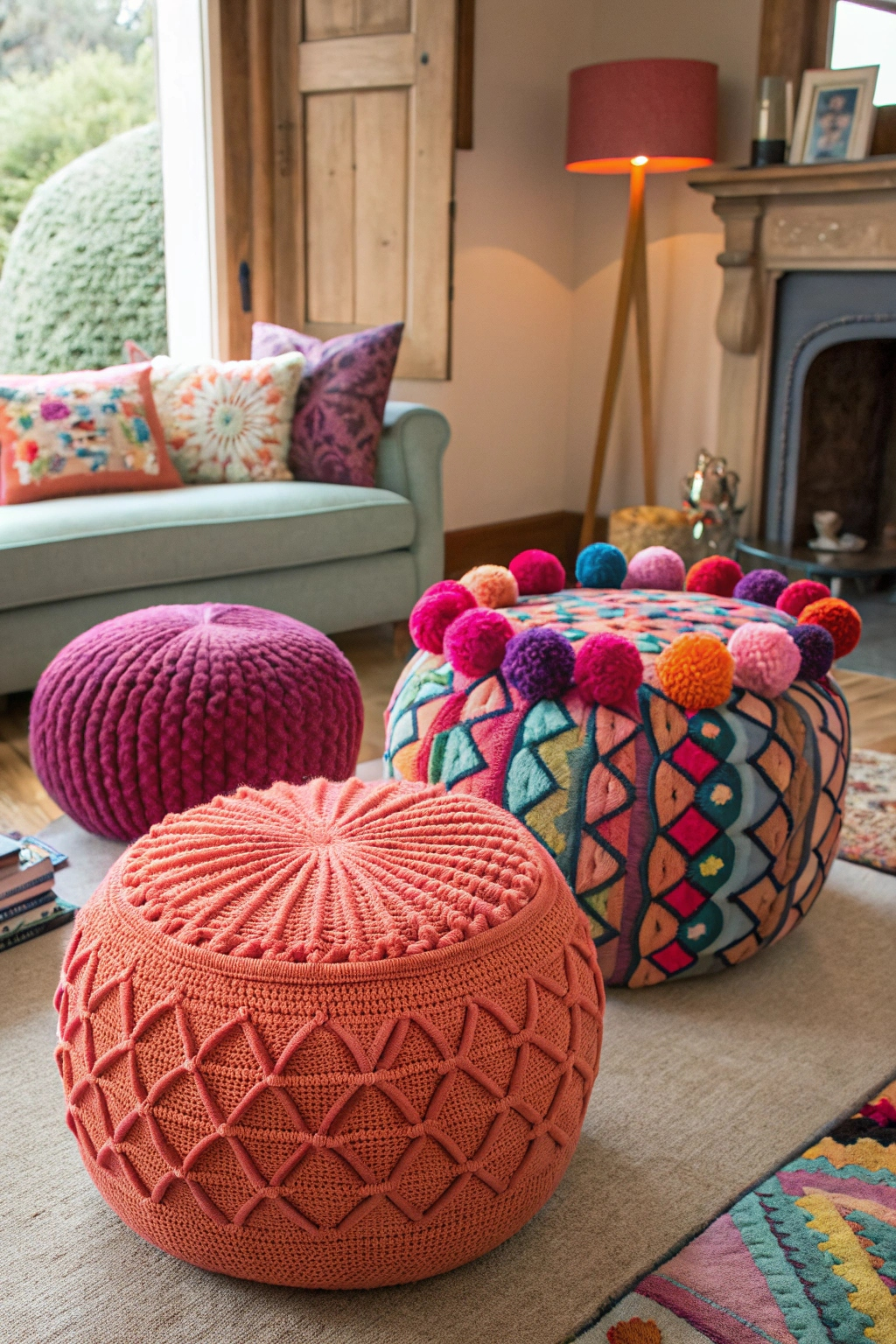 PinColorful poufs and ottomans can transform your living room into a vibrant and inviting space. They offer not just comfort, but also bursts of personality. Imagine how a bright yellow pouf or a deep teal ottoman can elevate your décor.