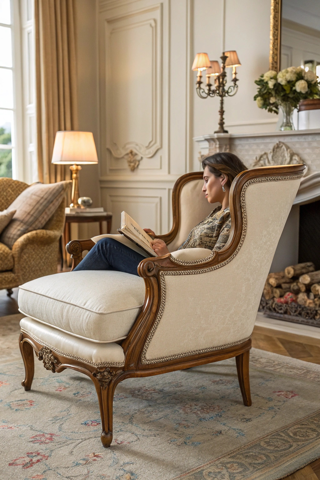 PinEmbrace the timeless elegance of a Classic French Bergère in your living room, where it effortlessly combines comfort and sophistication. Picture yourself sinking into its plush, upholstered seat while enjoying a good book or a glass of wine.