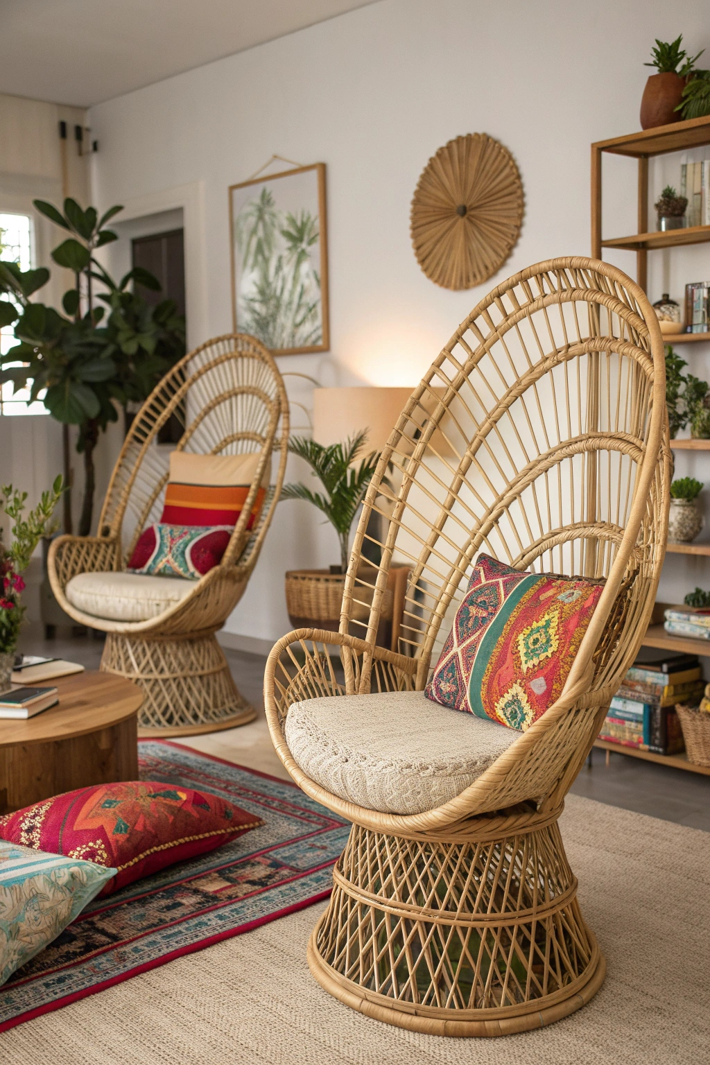 PinIf you're looking to add a touch of bohemian charm to your living room, Bohemian Rattan Chairs offer a perfect blend of natural beauty and unique design. Their airy structure and intricate weave create a laid-back vibe, inviting comfort and relaxation. Pair these chairs with colorful cushions or throws to enhance that boho aesthetic, making your space feel effortlessly stylish and inviting.