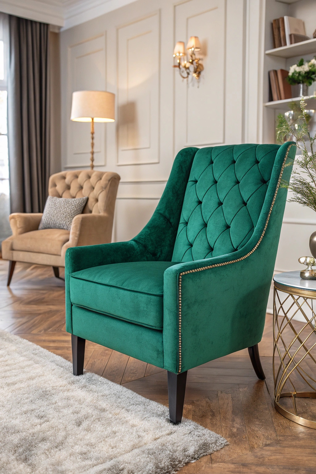 PinIf you're looking to elevate the style of your living room, vibrant velvet upholstery might be the perfect choice. This luxurious fabric adds a pop of color and texture, instantly drawing attention to your accent chair. Whether you choose bold hues like emerald green or deep blue, velvet creates a rich, inviting atmosphere that complements various styles while providing comfort and sophistication.