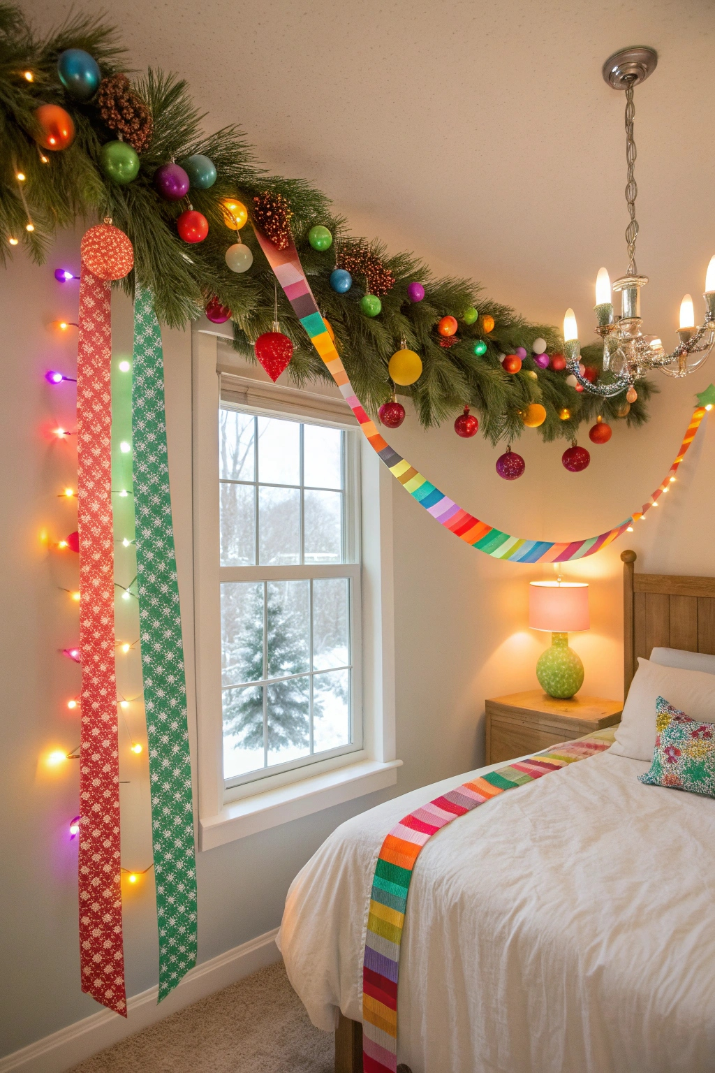 PinA vibrant garland can transform your bedroom into a wonderland of color during the holiday season. Consider draping multicolored lights alongside festive ornaments for a playful touch. You can also use ribbons in various hues, or create a DIY paper garland with bright patterns. Hang these garlands over your bed or window for an instant boost of cheer and warmth.
