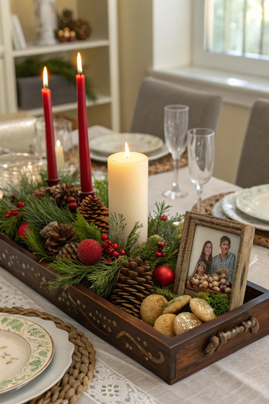 - A red or green table runner for color.