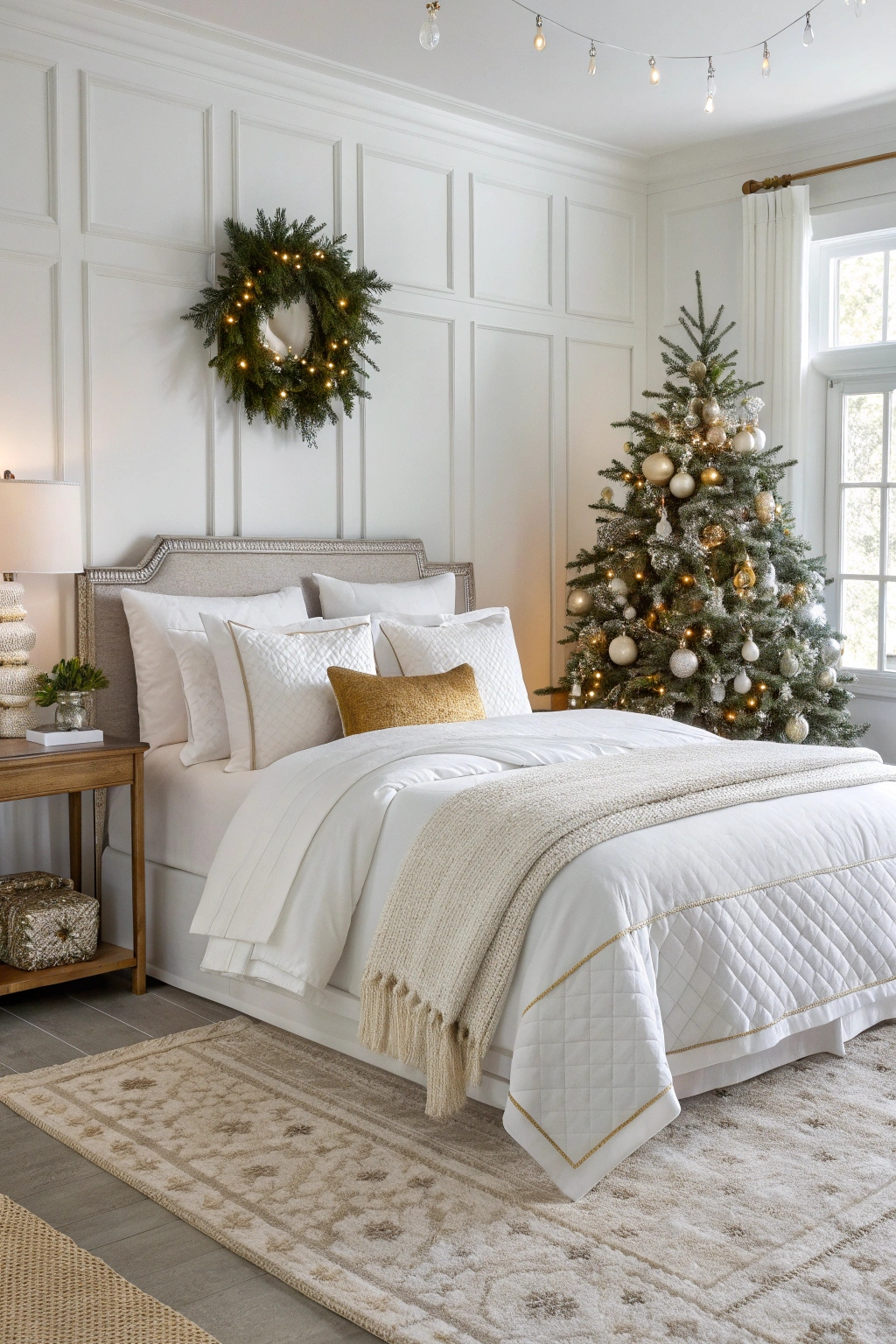 PinTo create a fresh and inviting atmosphere in your Christmas bedroom, crisp white bedding is a fantastic choice. It brightens the space and offers a clean backdrop for festive decor. To enhance this look, consider adding: