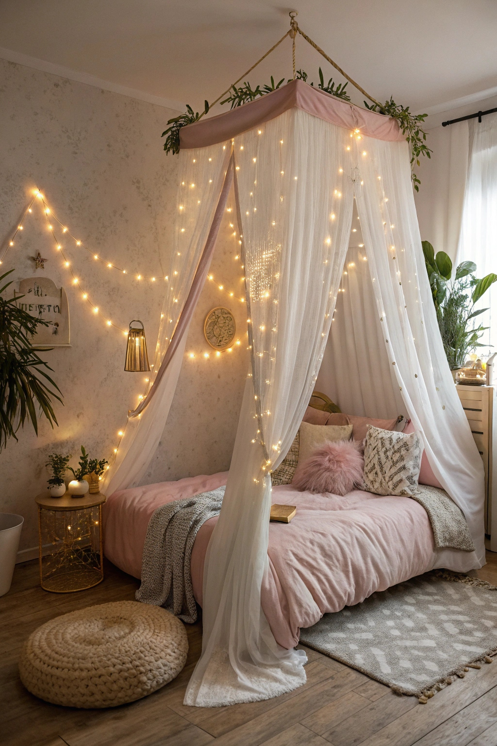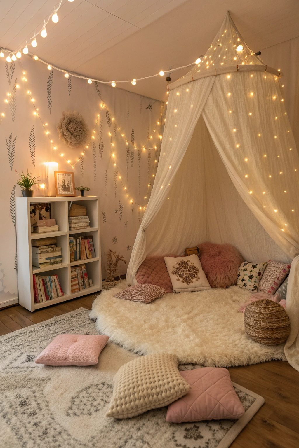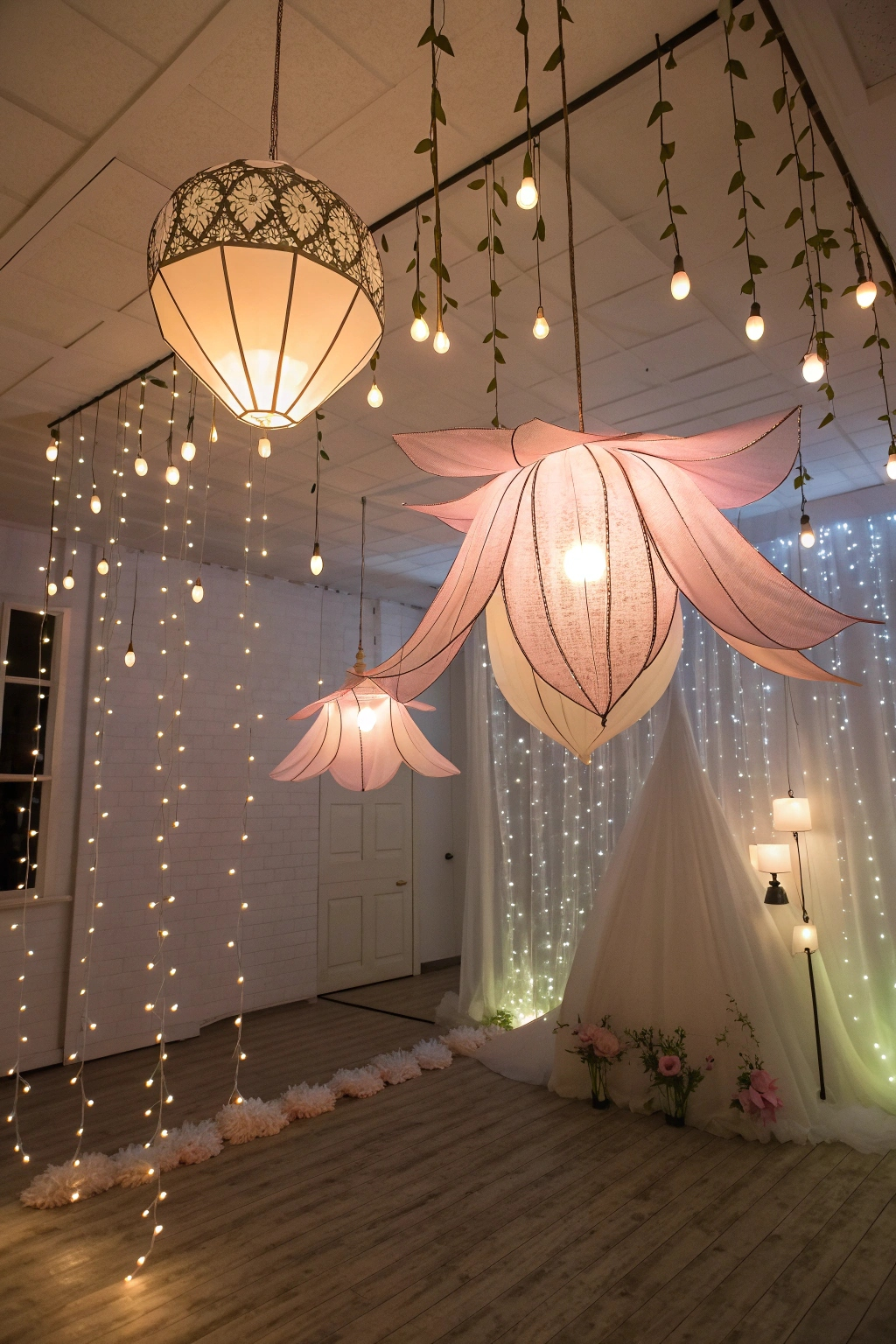 - Hang fairy lights for a twinkling effect.