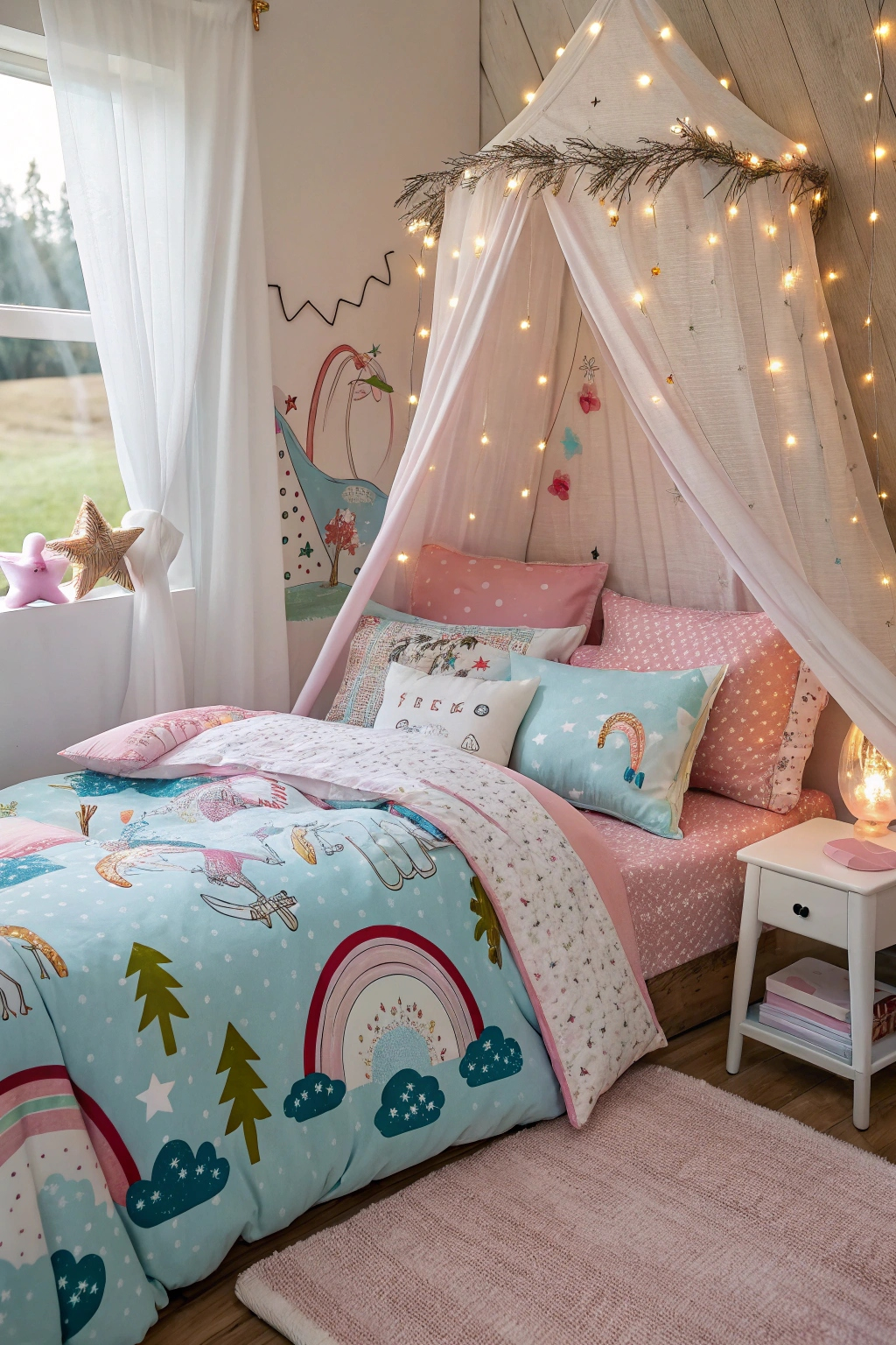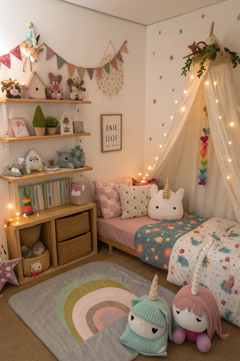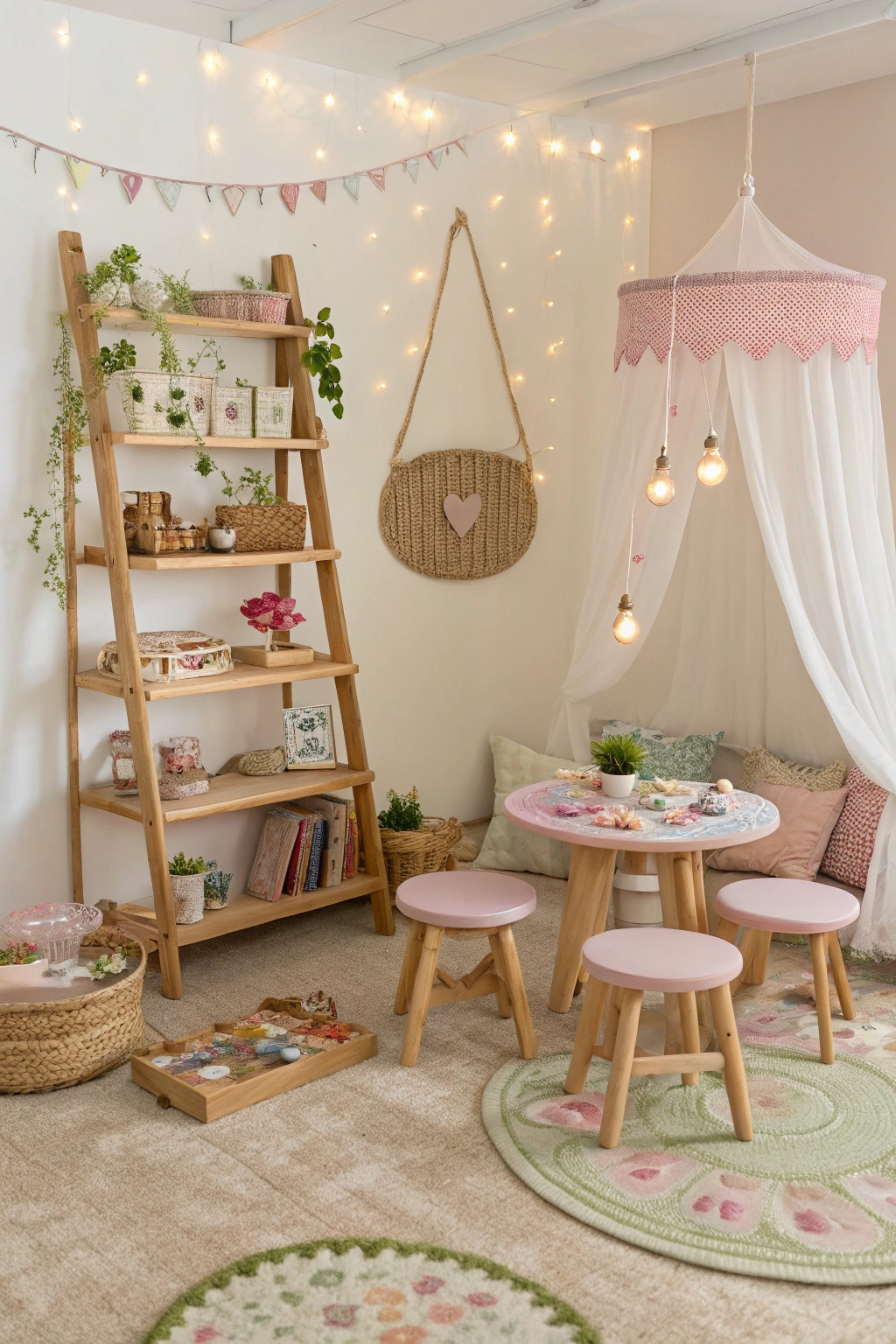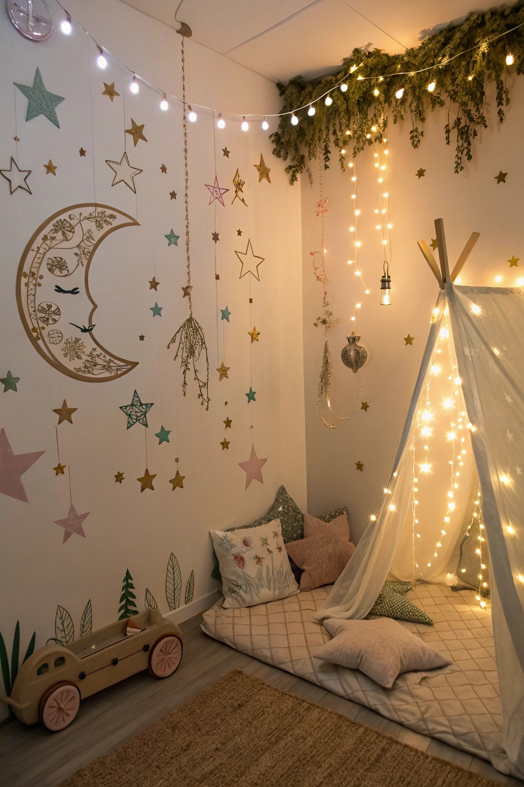 - Hang fairy lights for a twinkling effect.