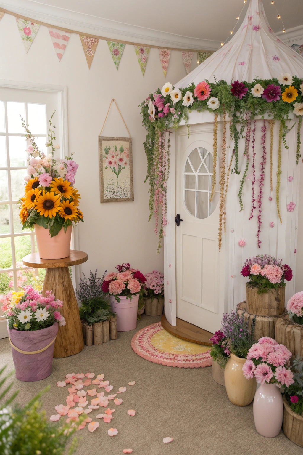 PinBringing the outdoors in doesn't stop with wall art; magical floral accents can add enchanting touches throughout your fairy room. Incorporate vibrant flower arrangements in whimsical vases or hang delicate floral garlands around your space. Utilize dried petals, pressed flowers, or artificial blooms to create a lush atmosphere. These floral elements will enhance your fairy room's charm and create a serene, inviting environment.