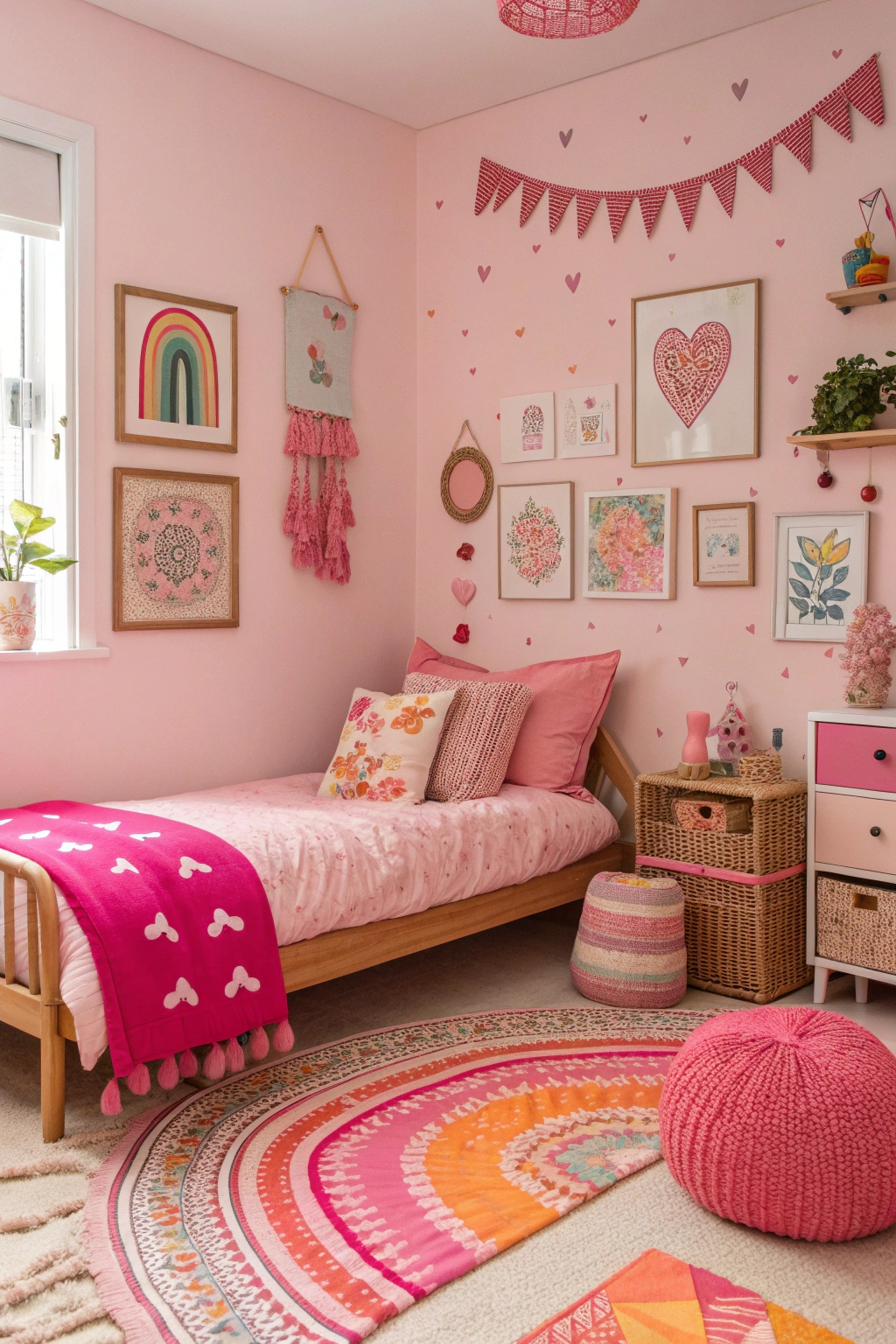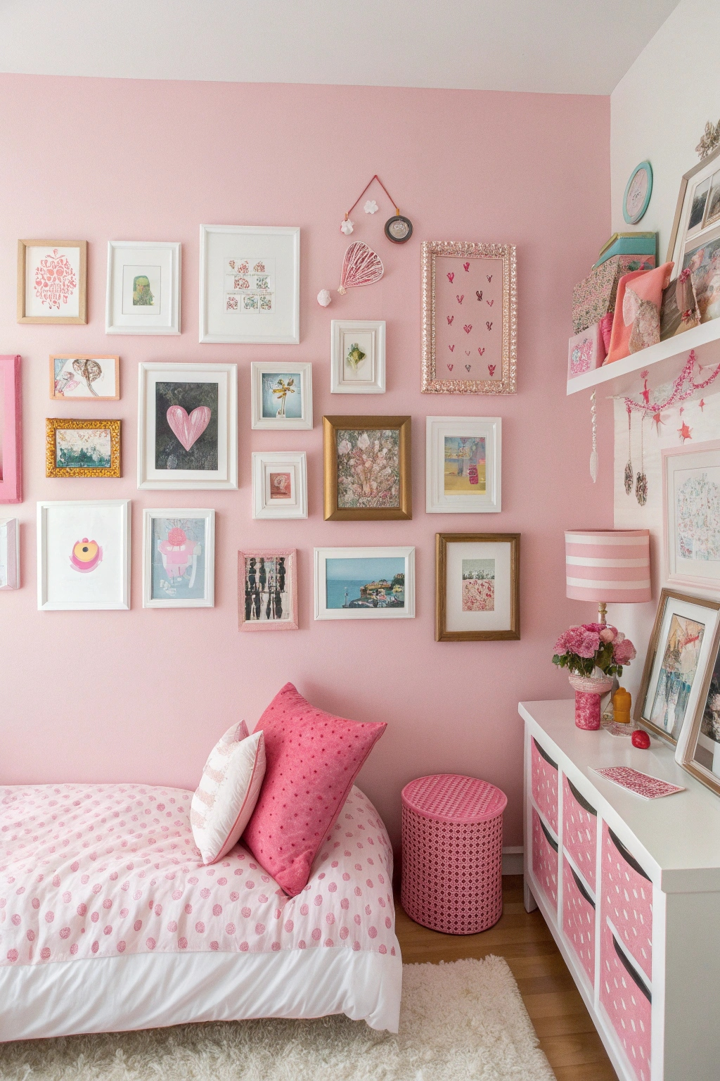 PinA pink gallery wall can be the centerpiece of your girly pink bedroom, showcasing your personality and creativity. Choose a mix of frames in varying shades of pink, along with art pieces that inspire you. Include photos, quotes, and prints that resonate. Arrange them in a visually appealing layout to create a vibrant focal point that brings warmth and style to your space.