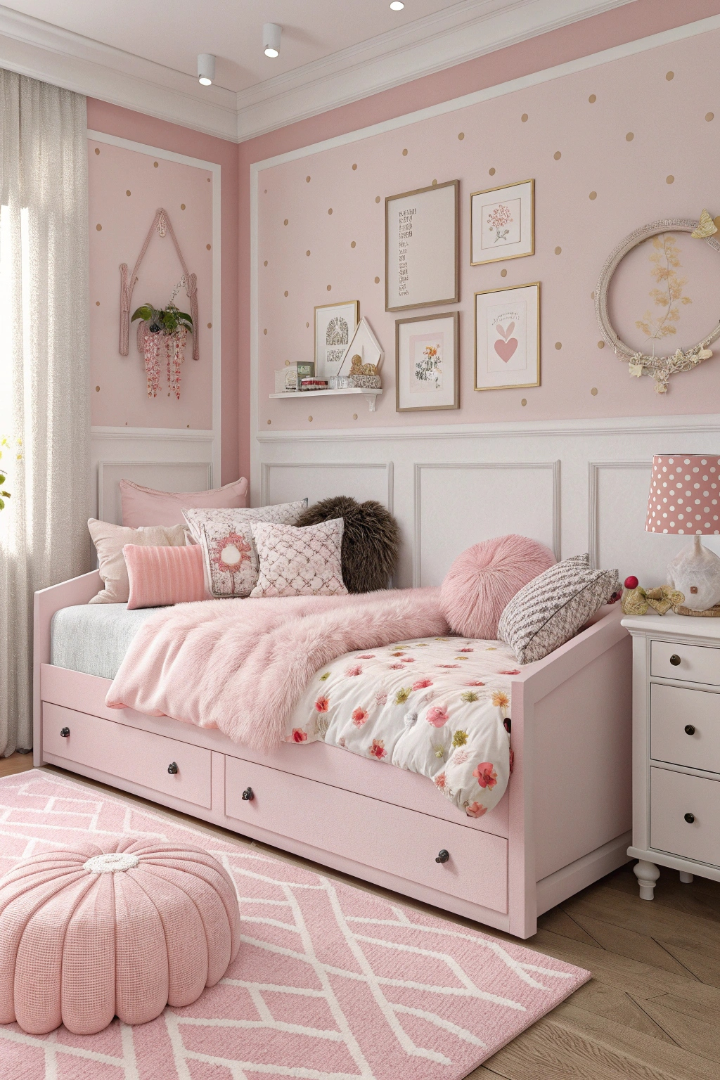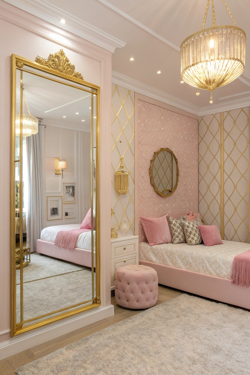 PinAdding a touch of glam to your girly pink bedroom can be as simple as incorporating pink and gold accents. These metallic highlights can elevate your space beautifully. Consider these ideas: