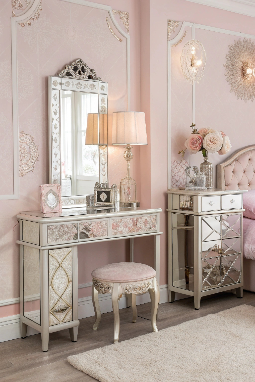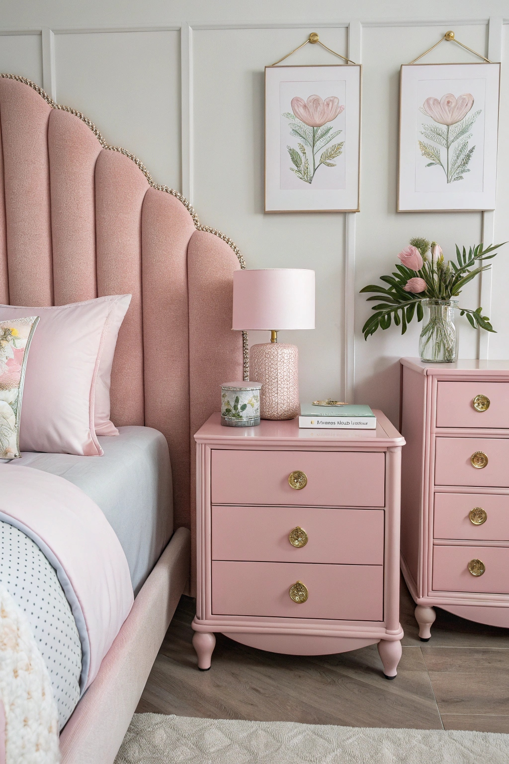 PinElegance defines the allure of pink mirrored furniture in a girly pink bedroom. Pairing a chic vanity or bedside tables with mirrored surfaces instantly elevates your space. The reflective quality amplifies light, making the room feel brighter and more spacious. Choose pieces with unique shapes or intricate designs to add a personal touch while maintaining that feminine charm to your decor.