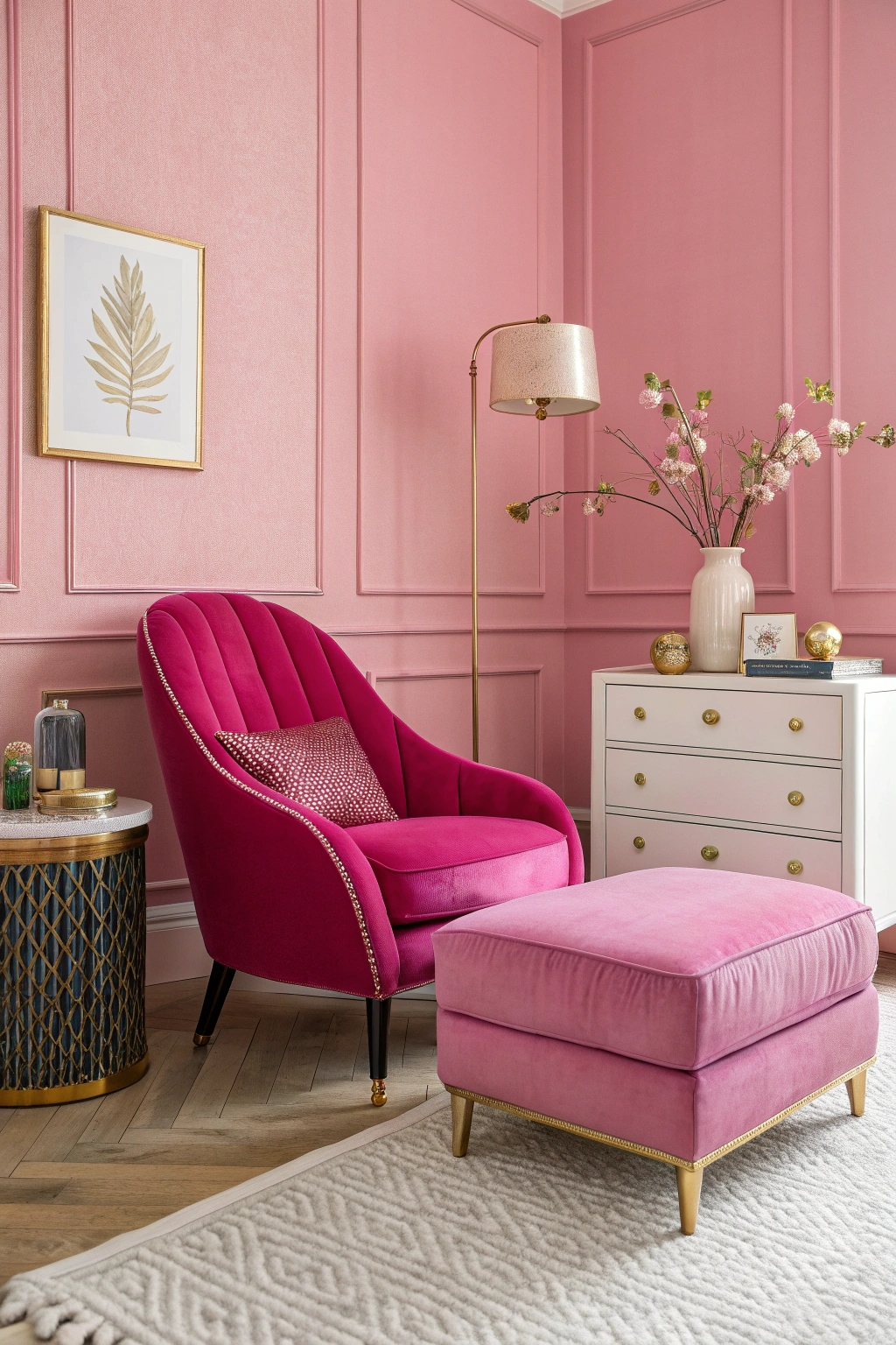 PinFuchsia accent furniture can add a vibrant pop of color to your pink-themed bedroom, creating an eye-catching focal point. Consider incorporating a fuchsia chair, ottoman, or side table to invigorate your space. These pieces can effortlessly contrast with your blush walls, bringing energy and depth. Pair them with gold or white accessories for a chic, cohesive look that truly stands out.