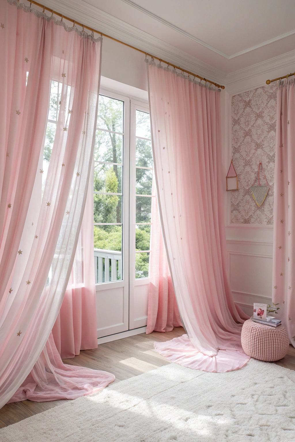 PinLet soft pink curtains sweep across your windows to create a dreamy atmosphere in your girly pink bedroom. These delicate drapes not only add a pop of color but also filter natural light beautifully. Consider these options for your space: