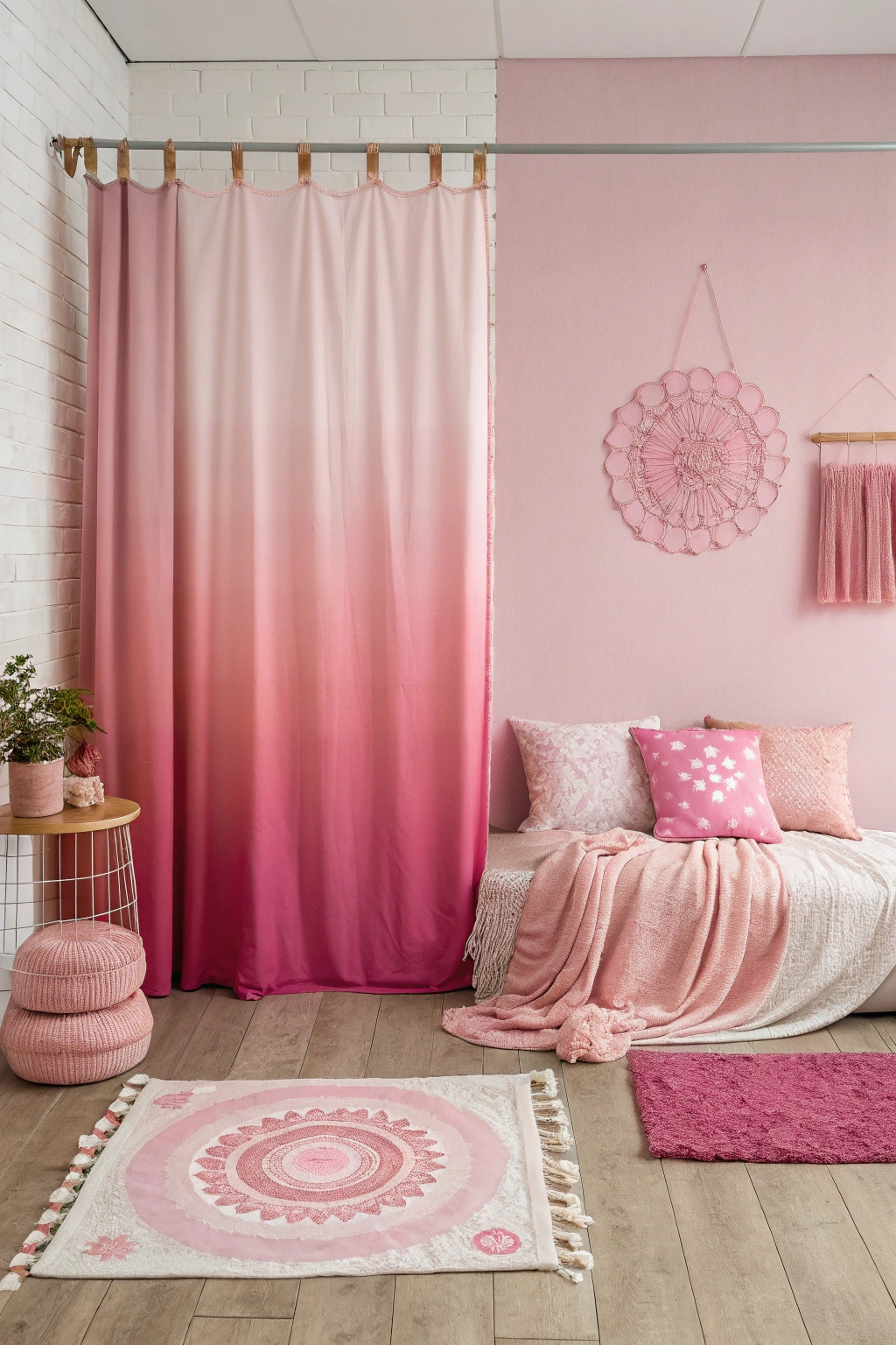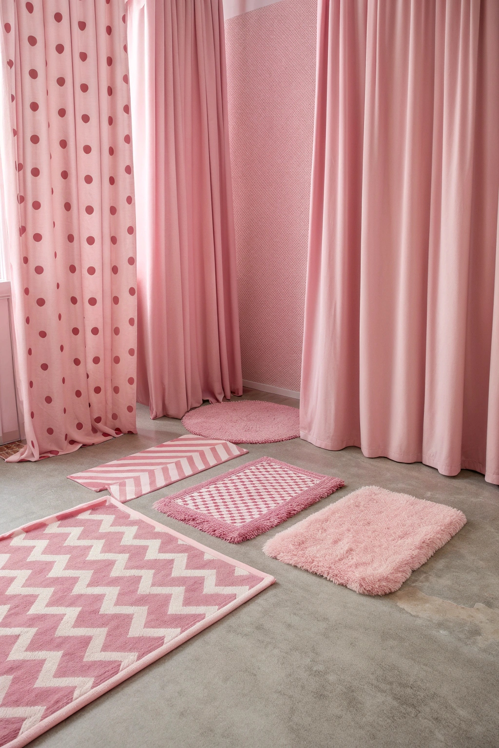 PinSoft pink curtains set the perfect backdrop, so now it's time to add some texture and warmth to your floors with playful pink area rugs. Choose rugs with fun patterns, like polka dots or chevron, to infuse energy into the space. Layer different shades of pink for depth, and consider soft textures like shag or plush for comfort underfoot. Your creative touch will shine!