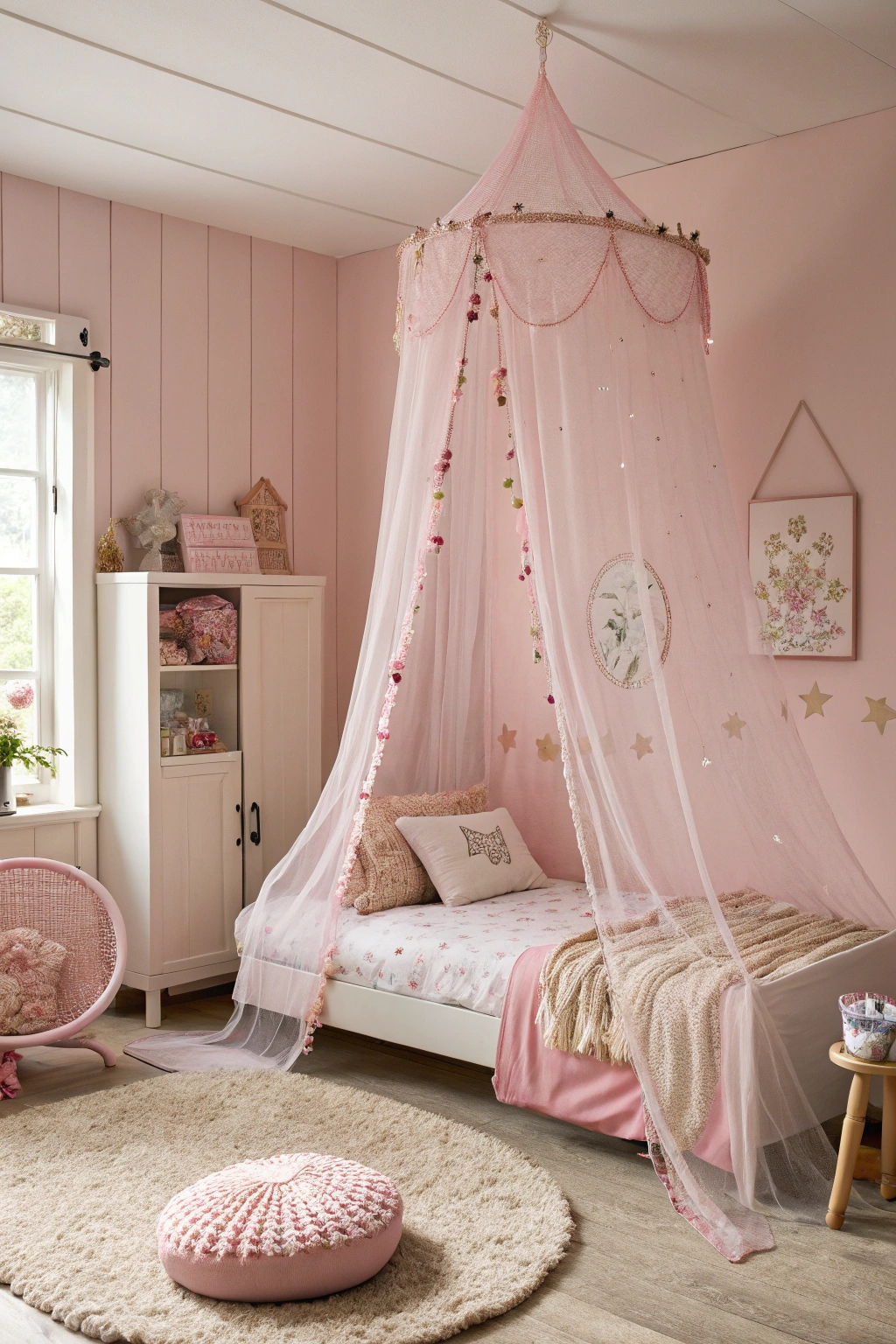 PinTransform your space with an elegant pink canopy that brings a touch of romance and whimsy to your girly pink bedroom. Choose sheer fabrics for a soft, dreamy look or opt for richer textures to create a cozy retreat. Hang it above your bed or in a reading nook, and let the delicate drapes frame your space, inspiring relaxation and creativity.
