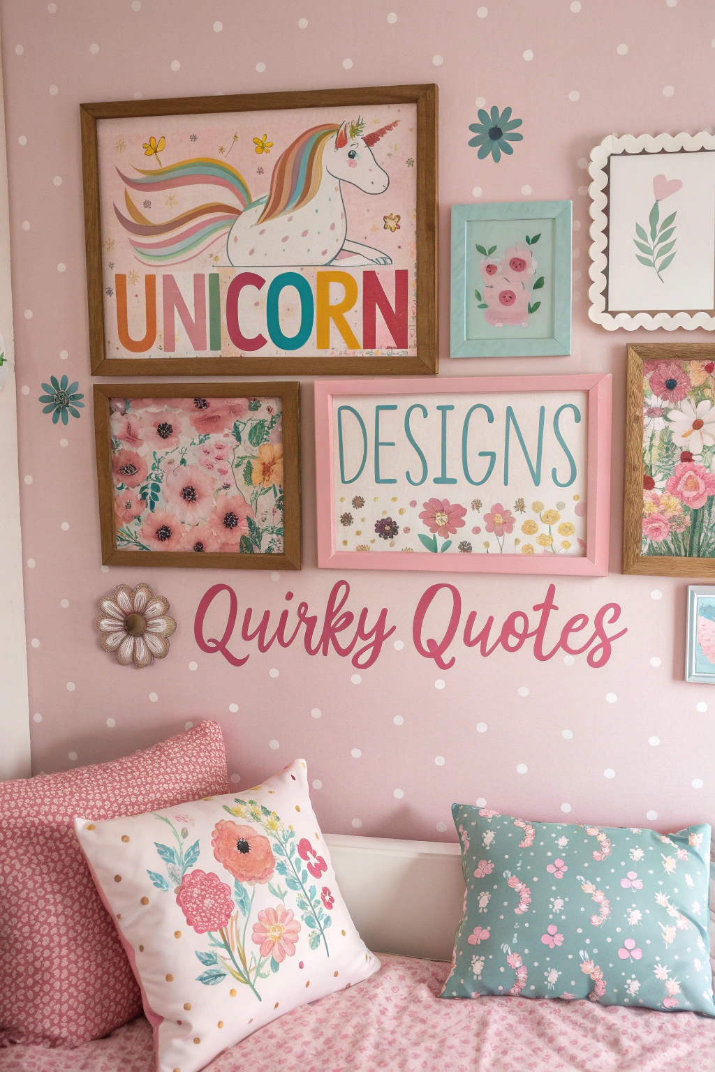 PinWhimsical pink wall art can instantly elevate the charm of your bedroom, bringing a playful touch to the decor. Think vibrant prints featuring dreamy unicorns, floral designs, or quirky quotes that reflect your personality. Hang these pieces in mismatched frames for an eclectic vibe. You'll love how they transform your space into a cozy, fun haven where you can truly express yourself.