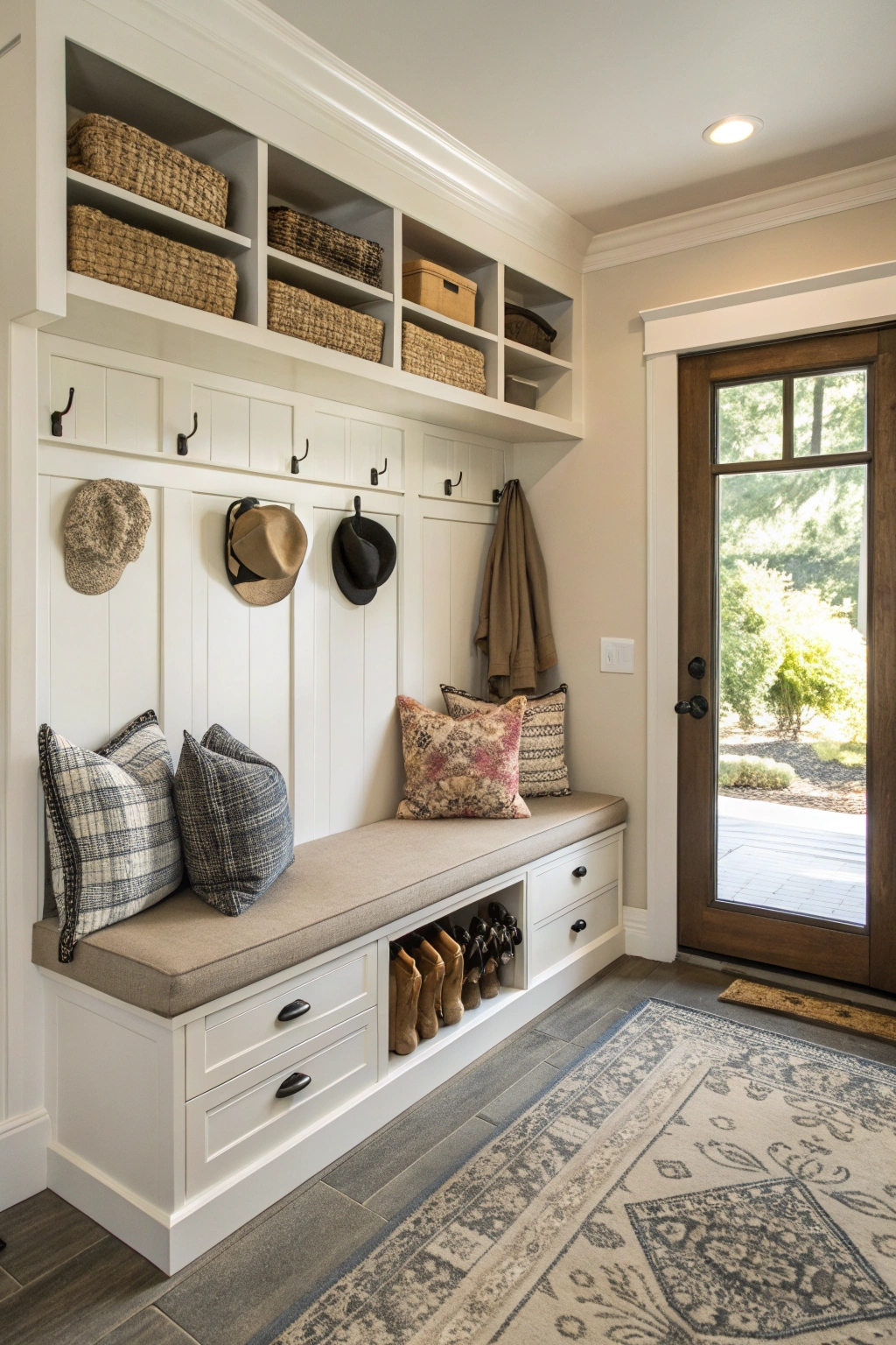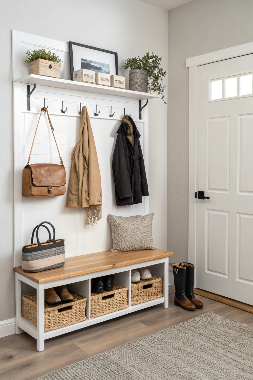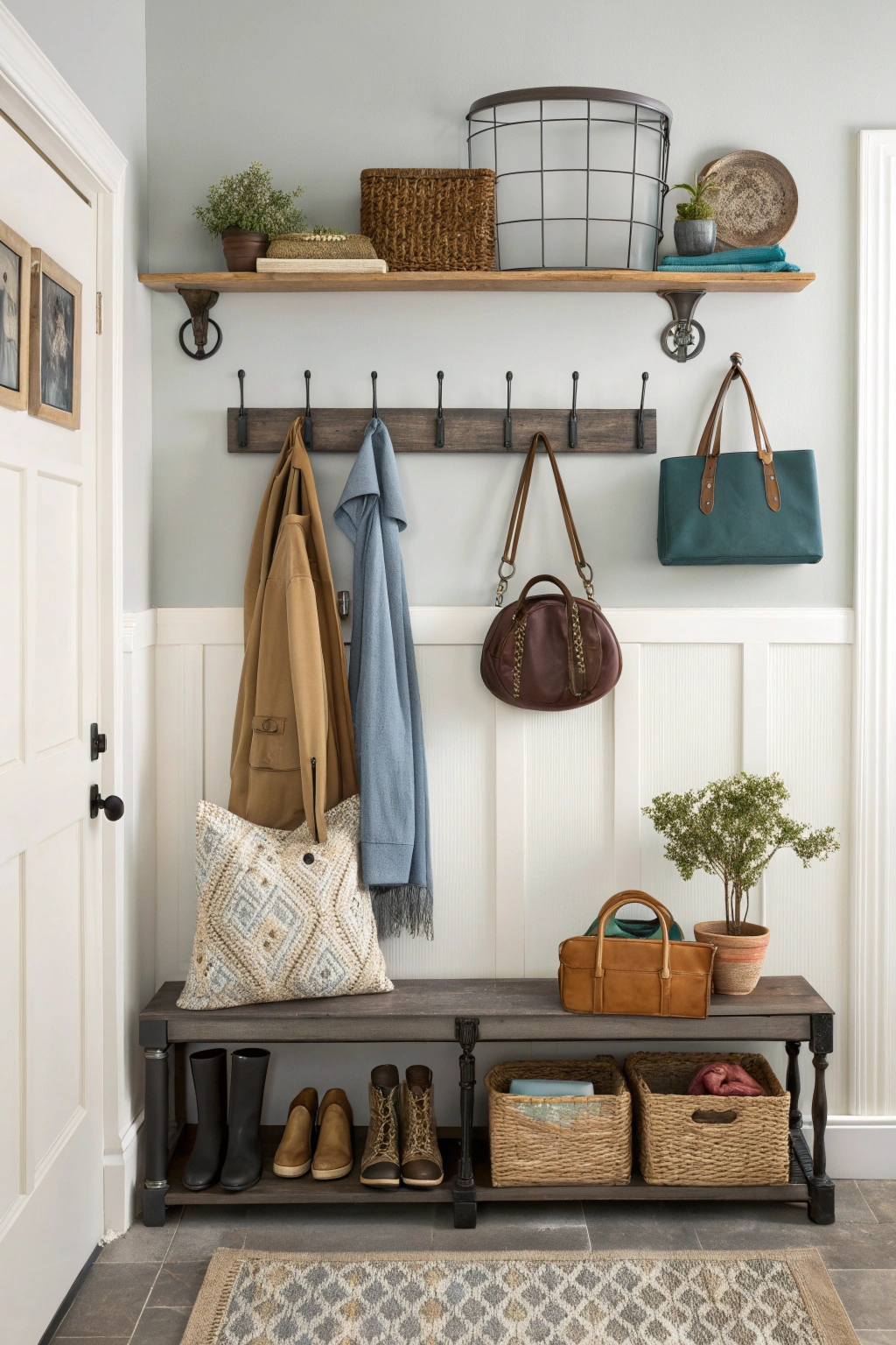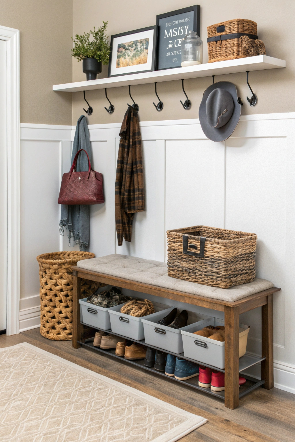 - Install a shoe rack beneath a bench
