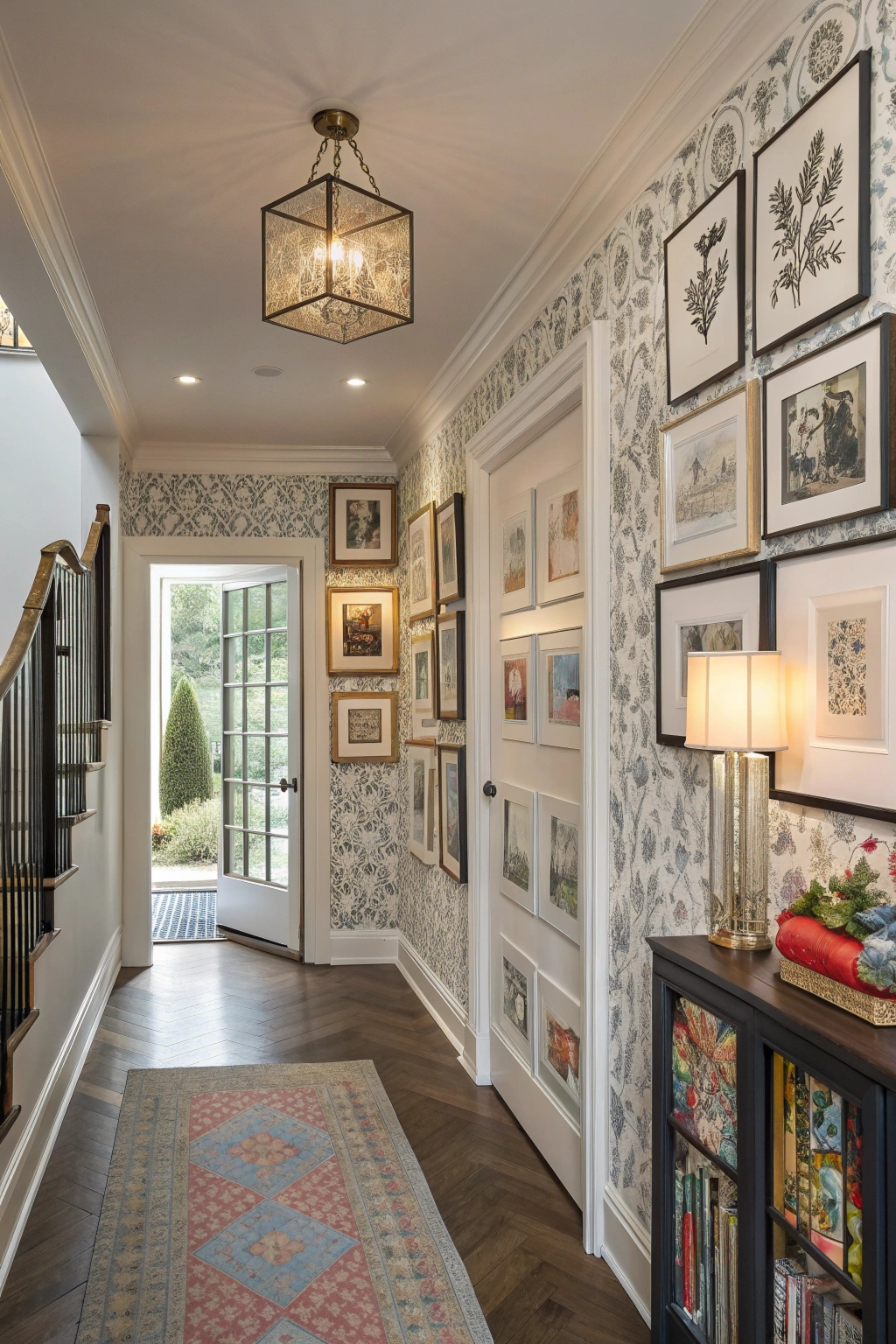 PinCreating a striking entryway doesn't stop at wallpaper; incorporating a gallery wall can further enhance your space. Choose a mix of artwork, photos, and other unique pieces that reflect your personality. Arrange them in an eye-catching pattern or a more organized grid. Play with frame styles and colors to create visual interest. This display will invite guests to explore your home's character right away.