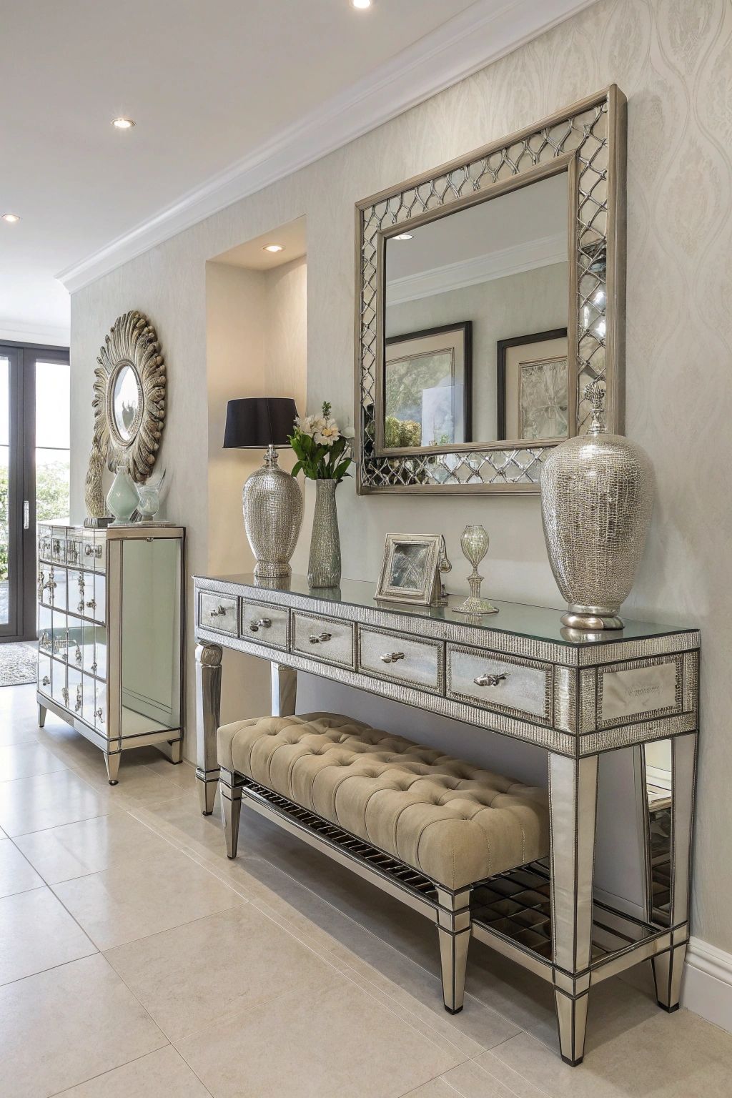 PinIf you want to add a touch of elegance to your entryway, consider incorporating mirrored furniture. It not only reflects light, making the space feel larger, but also adds a modern flair. Here are some stylish options to elevate your entryway: