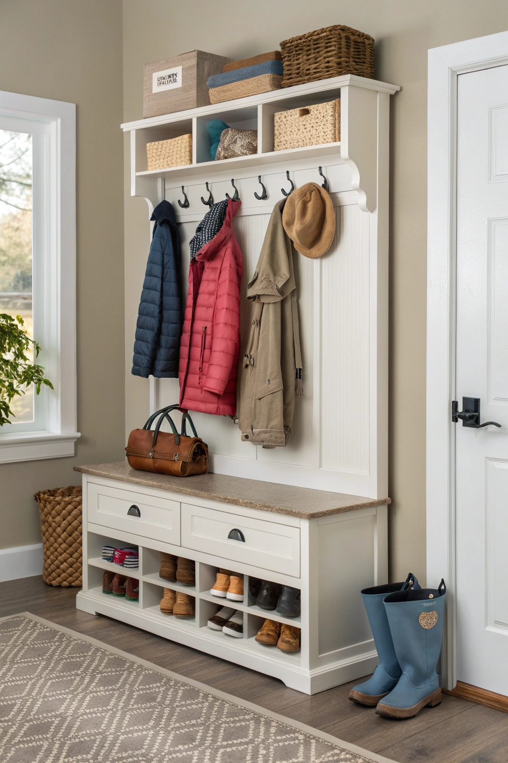 - Multiple hooks for family coats