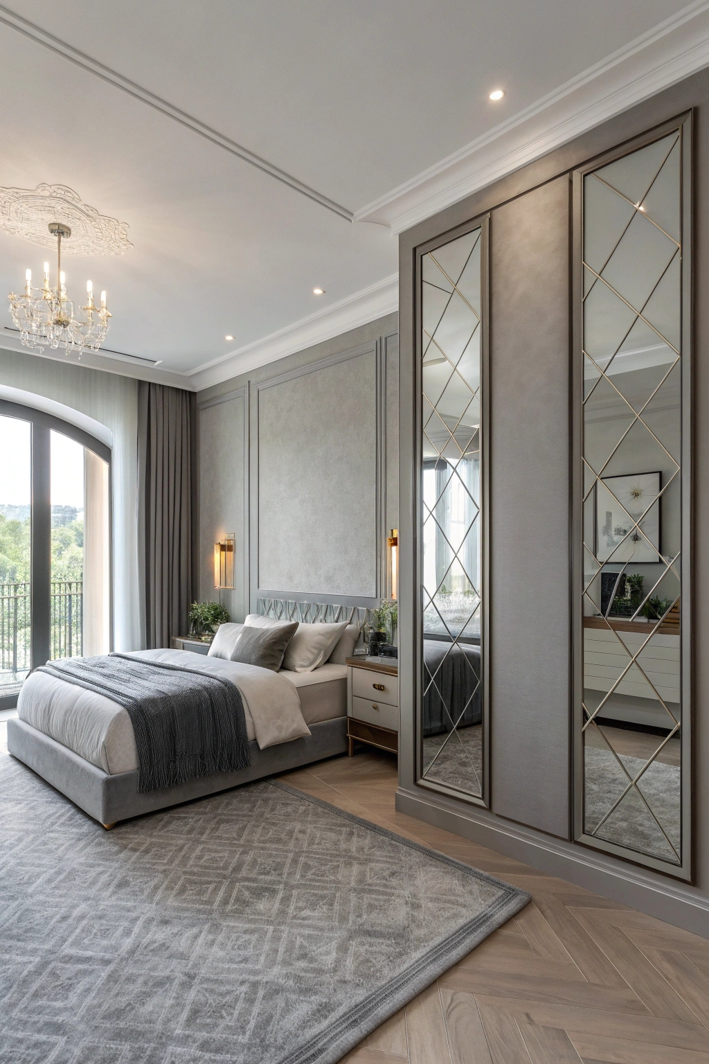 Incorporating grey mirrors not only improves aesthetics but also elevates the overall atmosphere of your bedroom, making it feel more open and inviting.