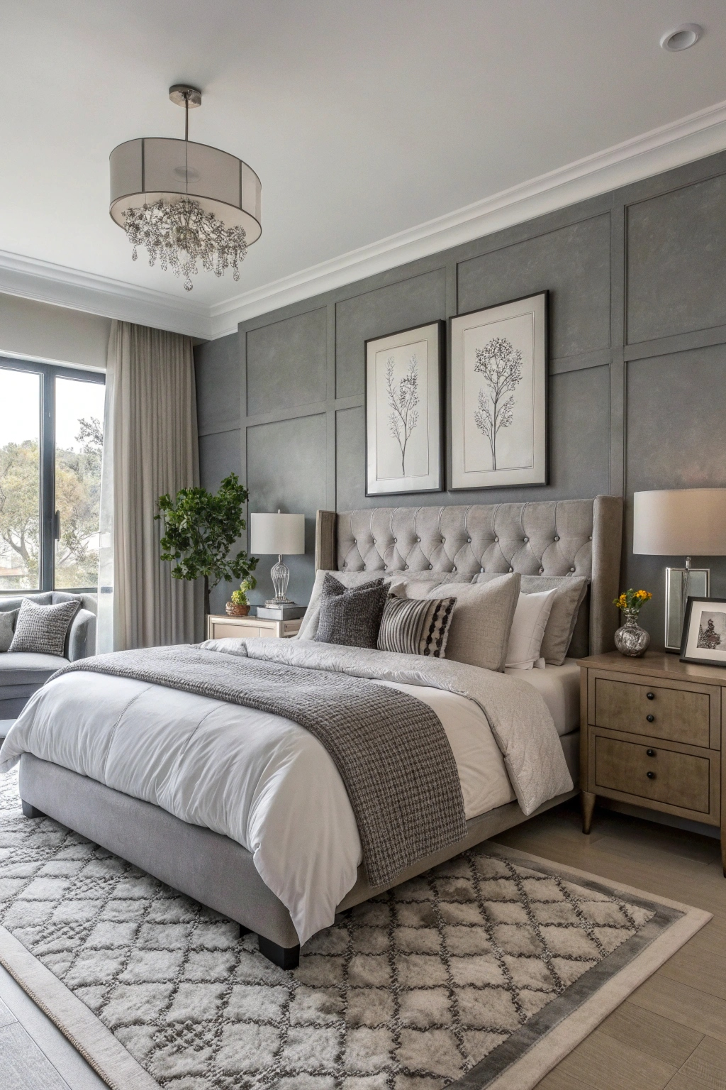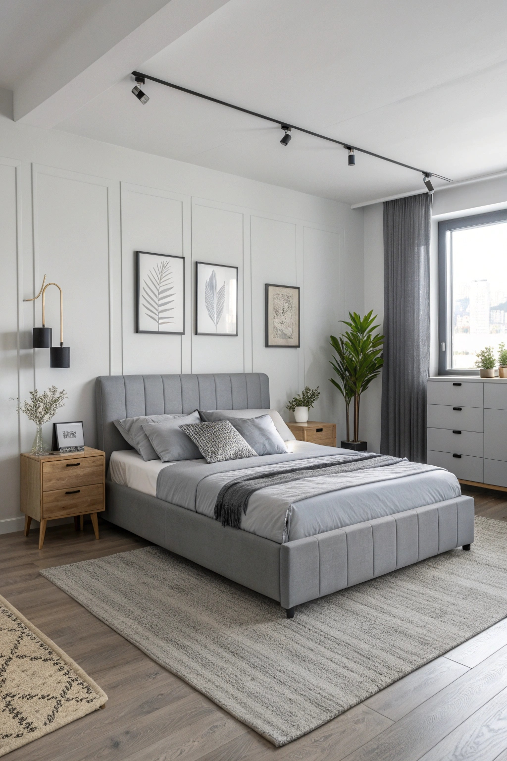 - Add sheer grey curtains to soften the ambiance.