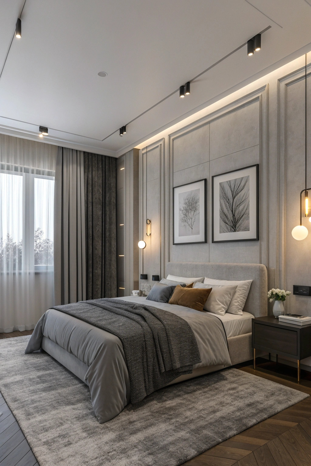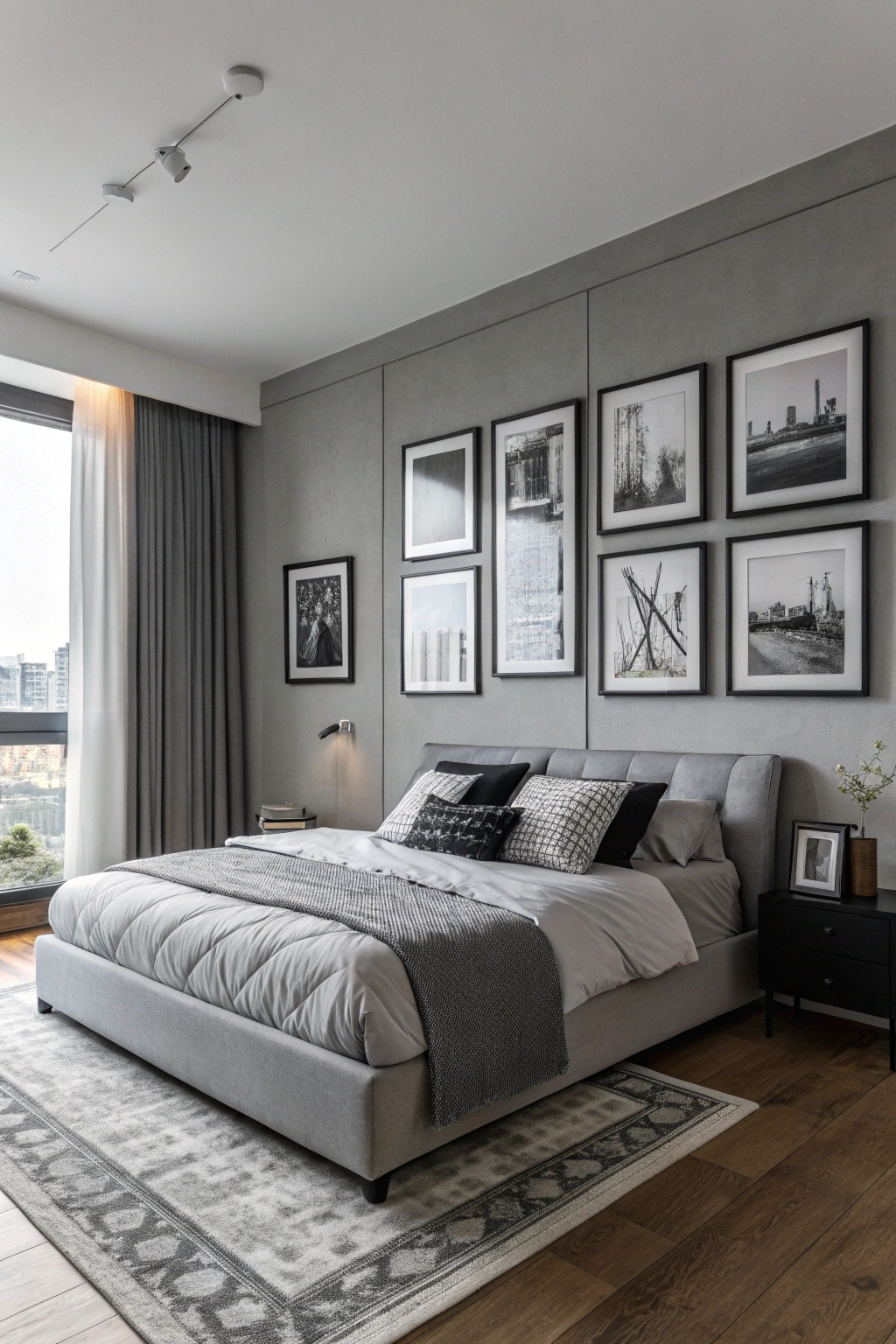 PinTransform your bedroom into a chic grey nightscape by incorporating thoughtful lighting and decor elements. Focus on these key features: