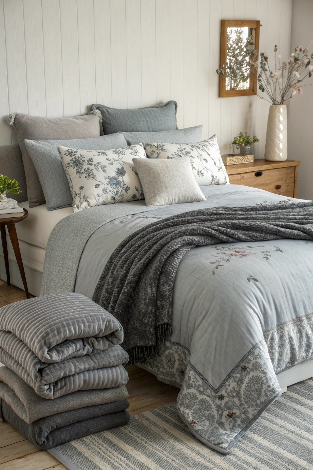 - Incorporate a plush grey throw on your bed.