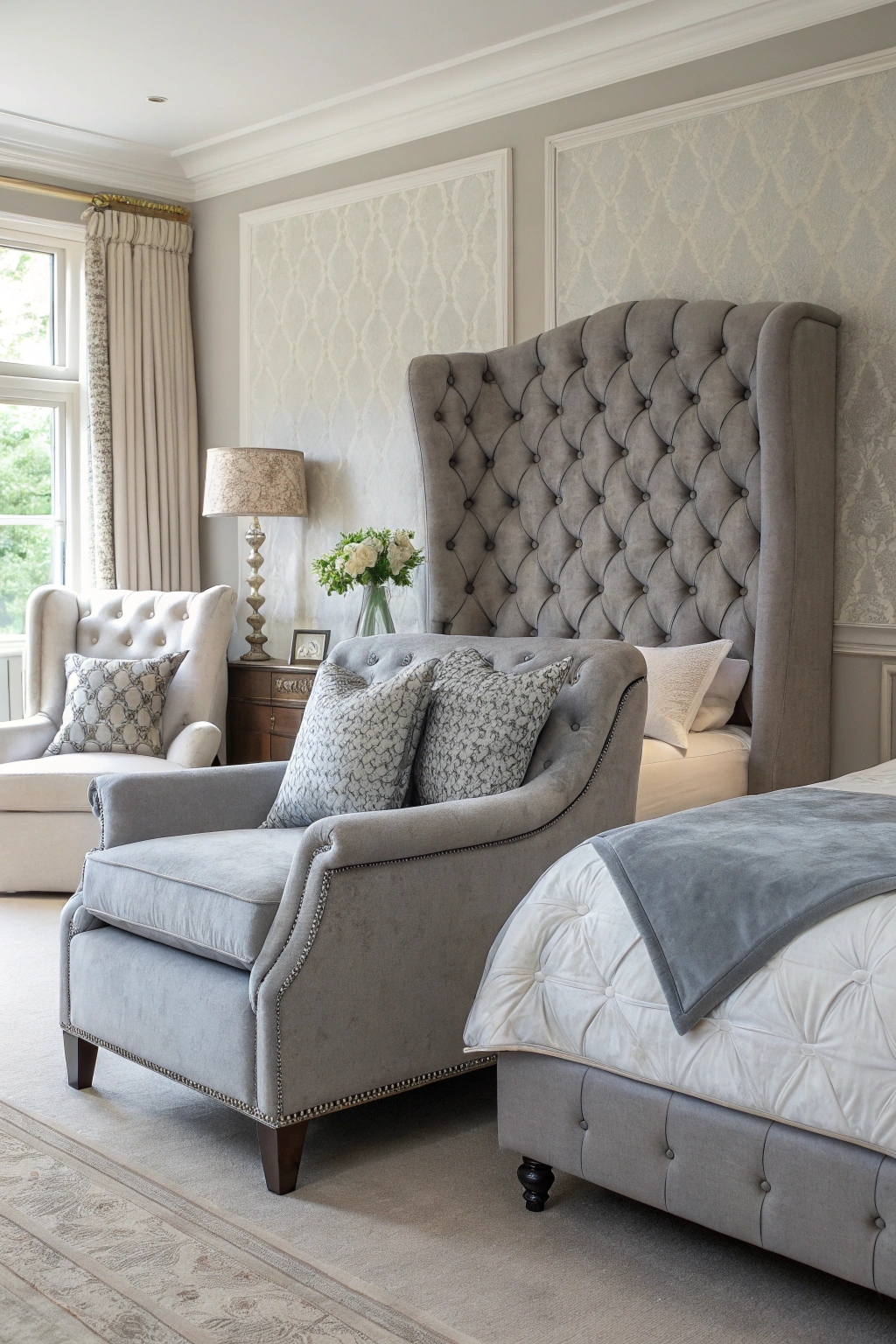 PinLuxurious grey upholstery brings a touch of sophistication and comfort to your bedroom. Imagine sinking into a plush grey headboard or draping soft grey throw pillows across your bed. Whether it's a stylish armchair or an elegant chaise lounge, these pieces create an inviting atmosphere. Choose rich fabrics like velvet or linen to elevate your space and enjoy a cohesive, chic look.