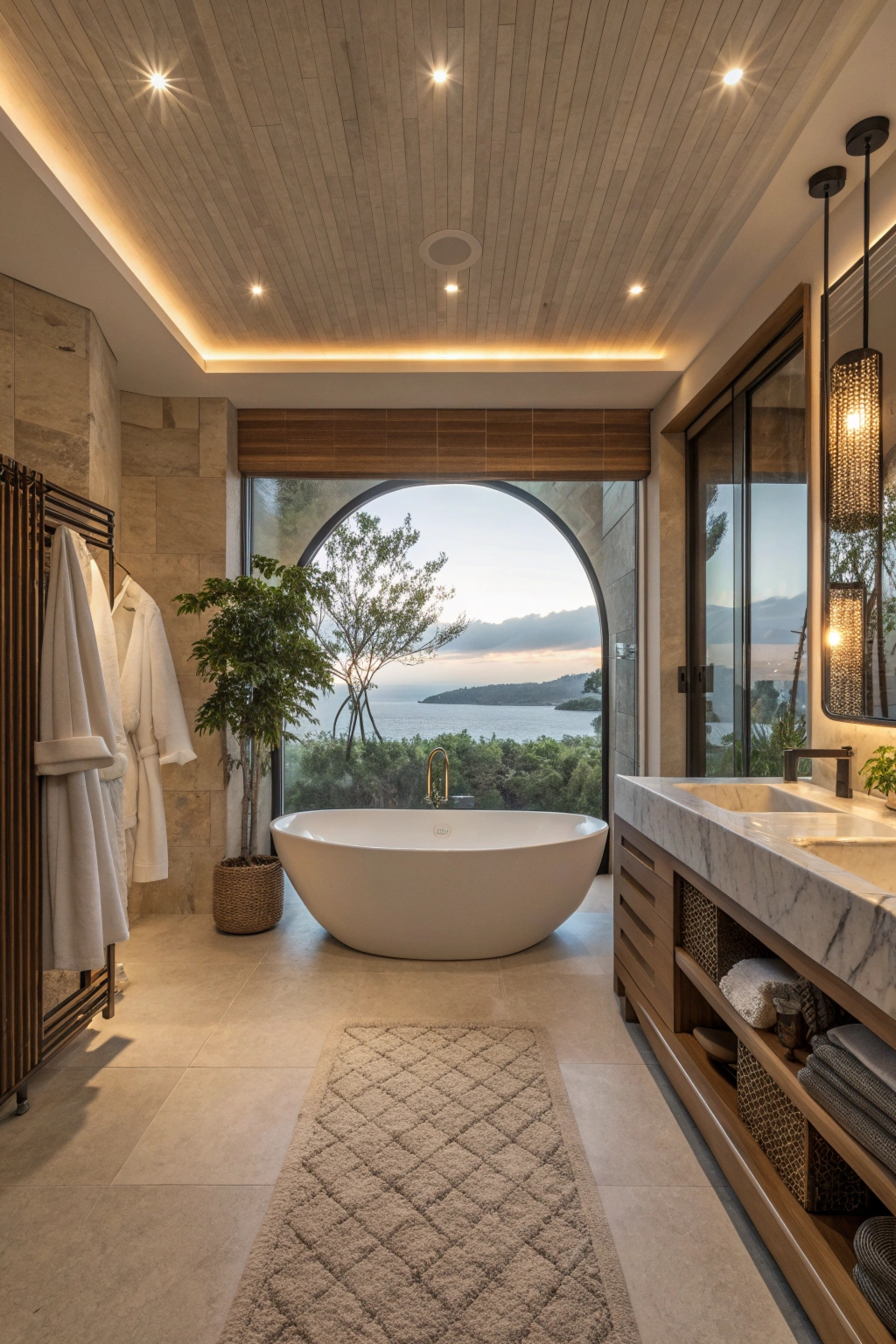 PinA spa bathroom wouldn't be complete without the right ambient lighting to set the mood. Consider soft LED lights, which you can dim to create a calming atmosphere. Wall sconces can also enhance the space, giving off a gentle glow. You might even add a decorative pendant light for an elegant touch. Choose warm tones to evoke a serene, spa-like experience.