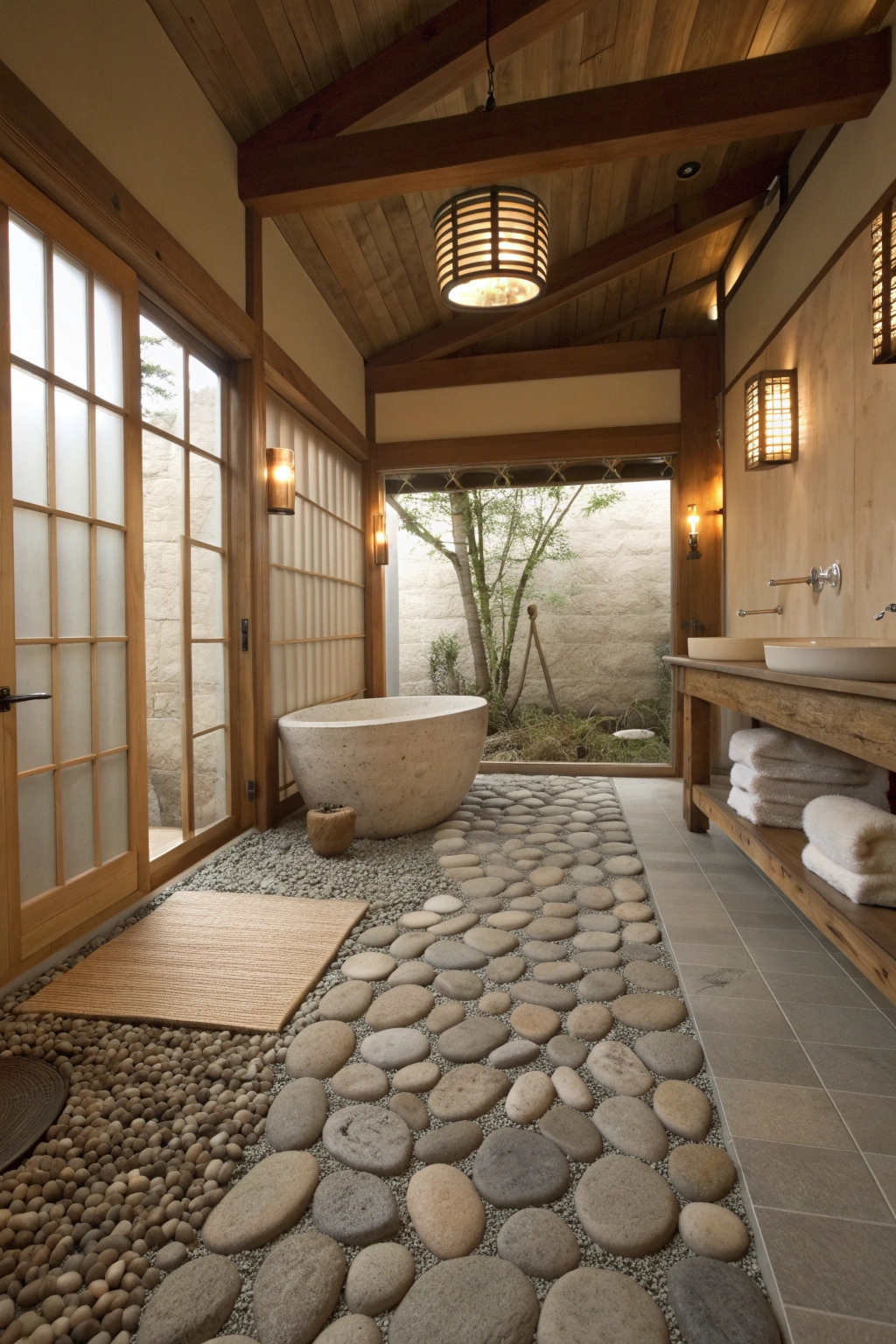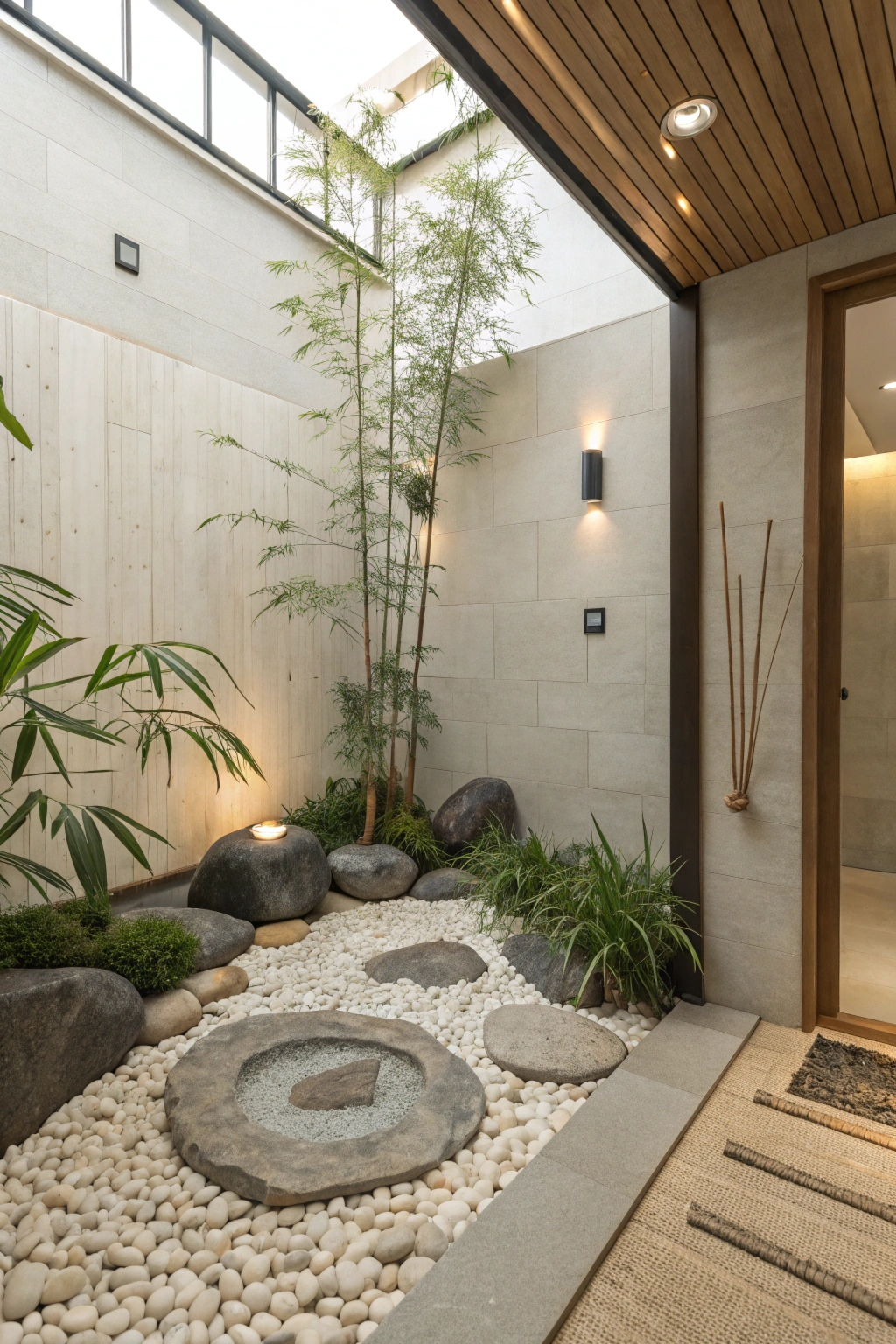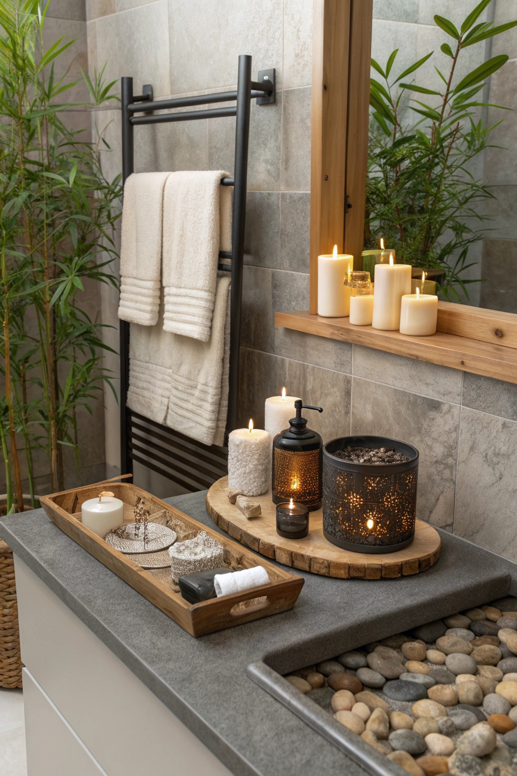 PinCreating a serene atmosphere in your spa bathroom can be beautifully enhanced with Zen garden elements. Incorporate a small rock garden with smooth stones and sand, allowing you to create patterns for a meditative experience. Add bamboo plants for a touch of greenery, and consider a small water feature to evoke tranquility. Together, these elements will create a calming, nature-inspired retreat.