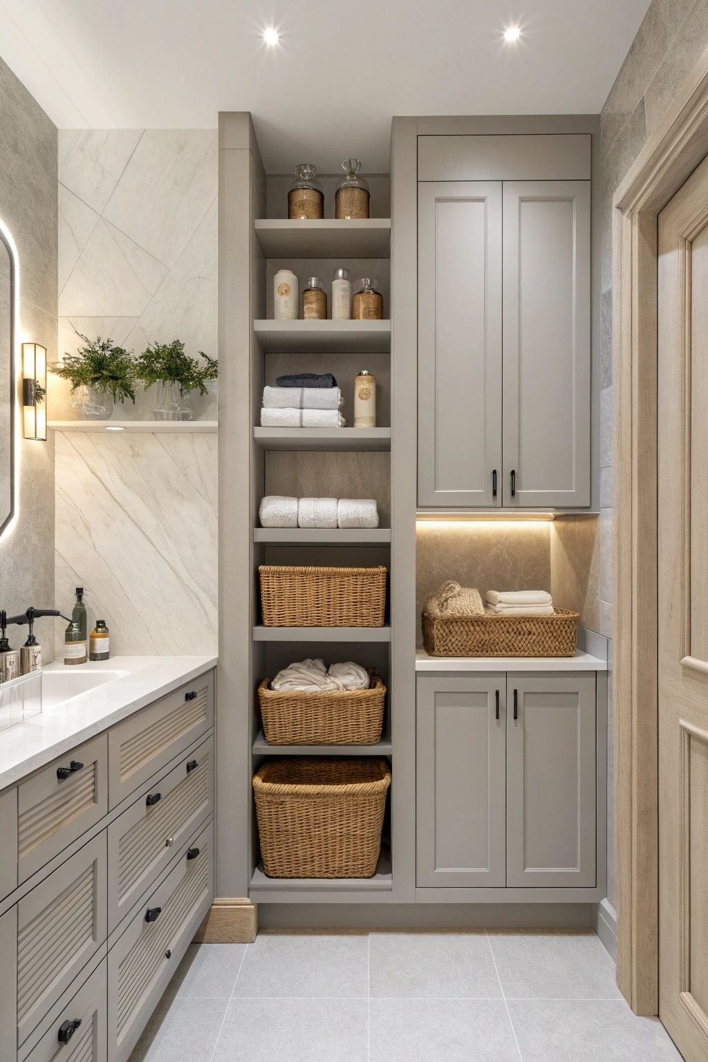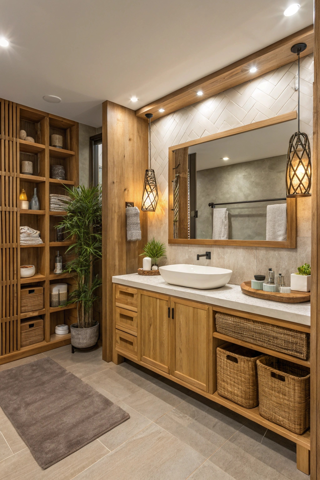 PinWhen designing a spa bathroom, efficient and stylish minimalist storage solutions can make all the difference in maintaining an uncluttered space. Consider wall-mounted shelves for displaying your favorite decor, and use sleek, discreet cabinets to hide essentials. Opt for wicker baskets to neatly store towels and toiletries, keeping everything accessible yet out of sight. This creates a serene environment perfect for relaxation.