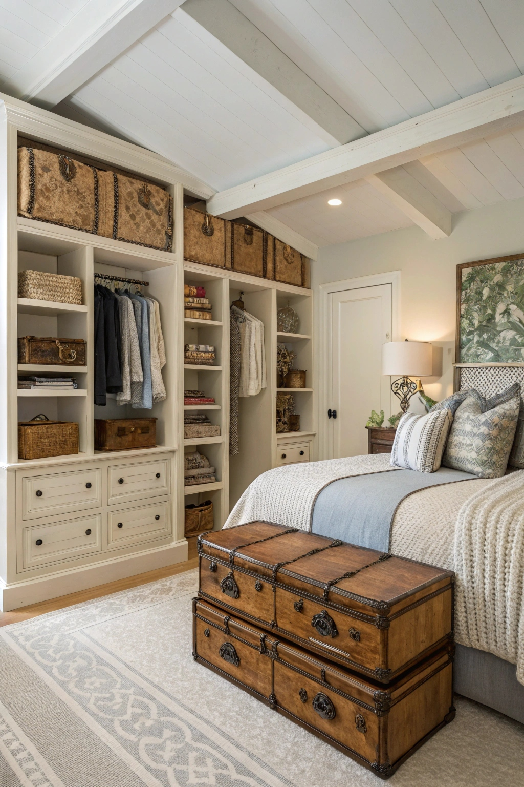 PinAfter showcasing your favorite items on open shelving, consider incorporating vintage storage chests into your bedroom design. These chests add character and offer practical storage. Here are three reasons to choose them:
