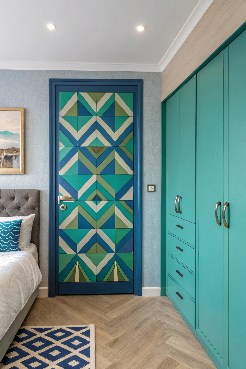 PinBold patterned doors can serve as a striking focal point in your bedroom, instantly adding personality and flair. You might choose geometric designs, floral prints, or even abstract art to express your style. These vibrant doors not only enhance your room's aesthetics but also create an inviting atmosphere. Plus, they can cleverly mask storage, making your cupboards both beautiful and functional.